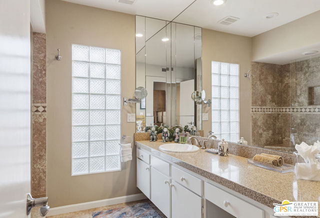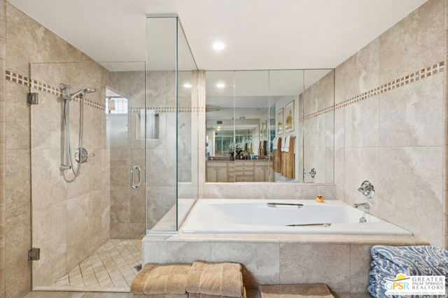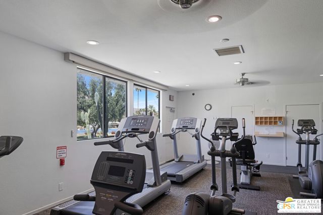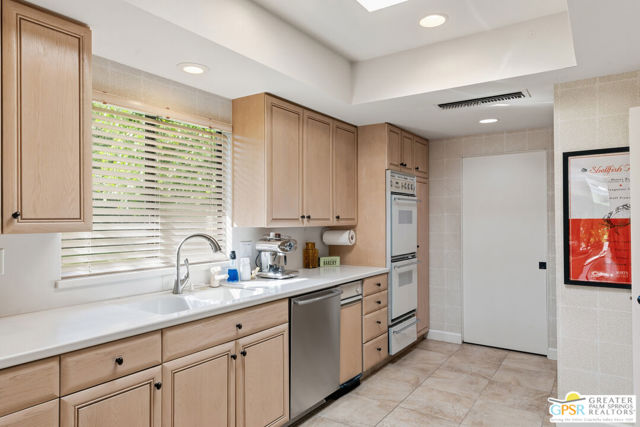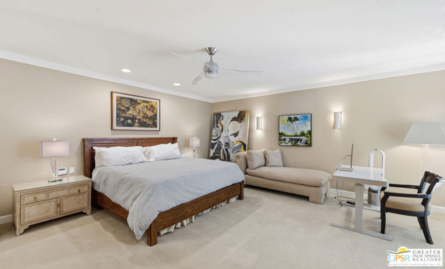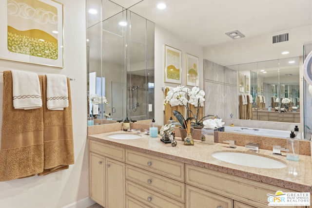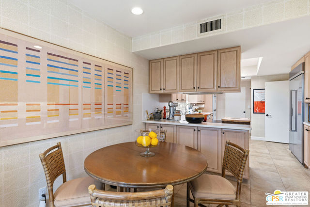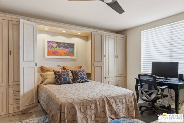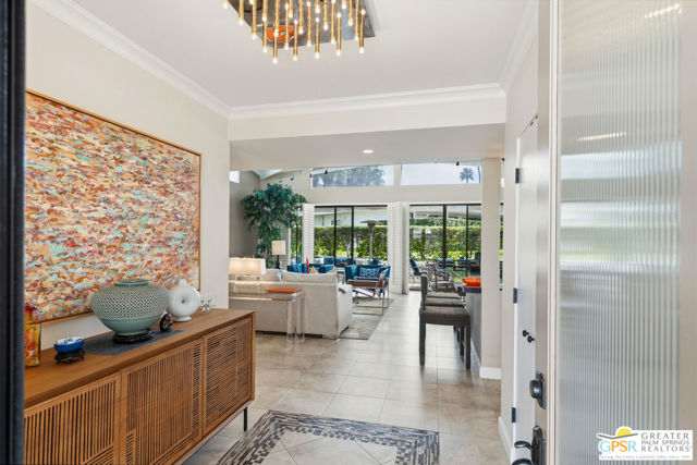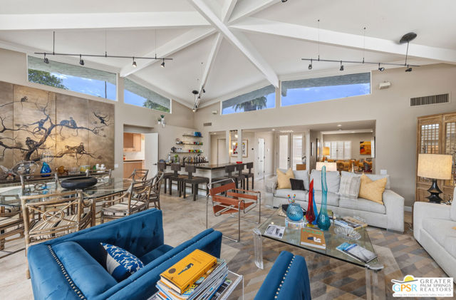 Mid-Century gem in the prestigious community of Canyon Estates, designed by Architect, Charles Du Bois. This 2600 Sq Ft detached condominium is a rare find in Palm Springs. Elegant clean lines, vaulted ceilings, generous light filled rooms, and clearstory floor to ceiling windows with mountain views make this cheerful home the perfect desert getaway.Beautiful details throughout include, ceramic tile flooring, plantation shutters, custom lighting, granite bar, built-ins, laundry area, finished two car garage and a covered patio that joins to all the main living areas. Large master suite features a walk-in closet, dressing area, and full master bath with a soaking tub, and shower. Two other guest bedrooms, one with en-suite bathroom and one is transformed into a den.Must see this wonderfully charming lifestyle home, amazing amenities included with the HOA fee include, Cable TV, Internet, Earthquake Insurance, ground maintenance, 9-hole, par-3 golf course, 15 community swimming pools, 12 spas, two championship tennis courts, pickleball courts, pool table, and a fitness center.