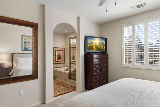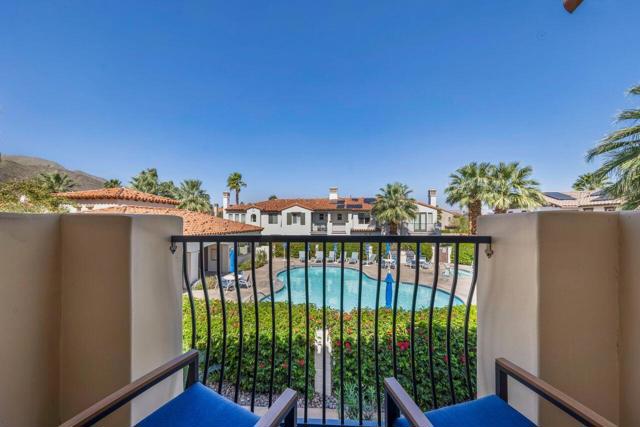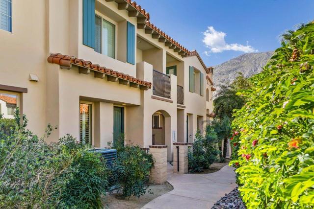 Enjoy a beautiful mountain view from this furnished condo, in a gated community with a gym. pool, spa & barbecue grills. Located close to downtown Palm Springs, it is only a 4 minute drive or one mile walk. Within the last two years condo has been painted, kitchen granite, mirrored walls, carpet, stove, refrigerator, televisions, toilets and plumbing valves have been updated. The 2-car garage is equipped with cabinetry and has direct access to condo. Two Primary Bedrooms with full baths that both offer double sinks.