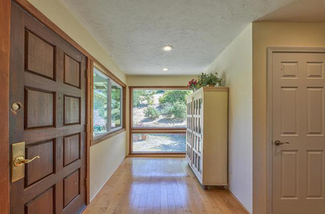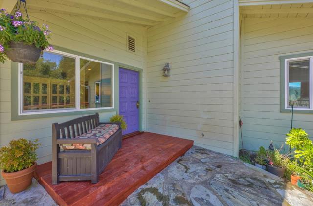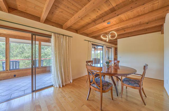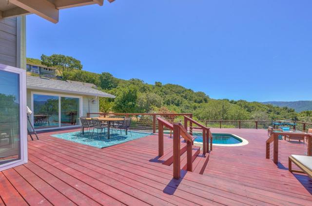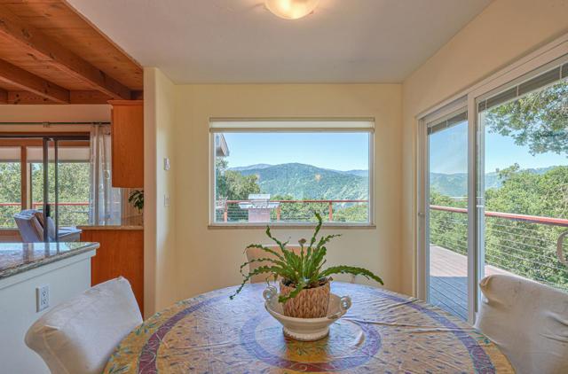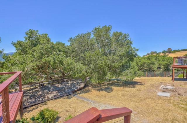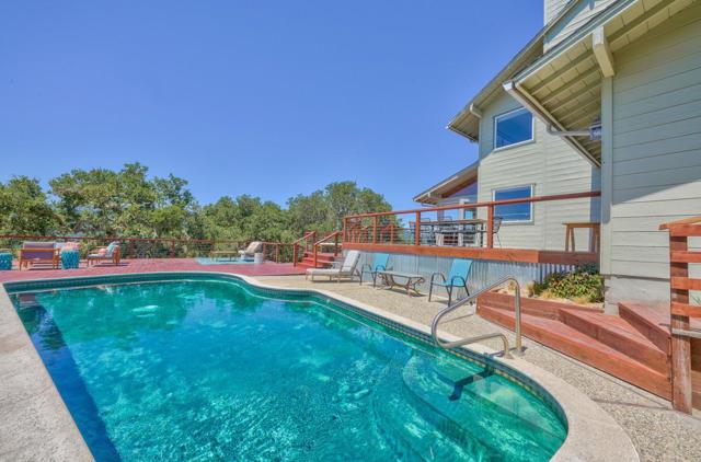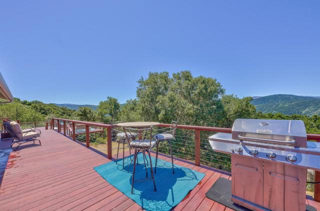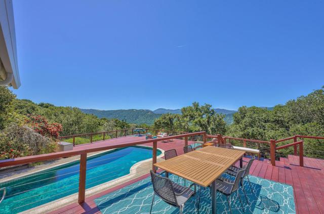 At 1100 FT elevation, nestled among 250 year old oak trees at the end of a 450 FT private driveway this country barn style two-story home on 2.4 acres, with a black bottom pool is surrounded by a 3000+ SF redwood deck ready for entertaining. The property is in the highly rated Carmel Unified School District. The spacious sunroom has Santa Lucia mountain vistas leading to Big Sur. The primary bedroom suite, including bathroom and laundry room, are on the first floor and newly remodeled with radiant heat. Two upstairs bedrooms share a remodeled bathroom also with radiant heat. The larger of the upstairs bedrooms has a fireplace and both have stunning Santa Lucia mountain views. The living room has a large slate fireplace and opens to the dining room. All electric. New 40 Year roof. New wood floor downstairs and new carpet upstairs. 50A sub panel in 20' X 23' garage for EV circuit. Detached 280 SF workshop/studio with 50A sub panel. This is the perfect home for those that treasure their privacy and quiet and have family gatherings celebrating life.
