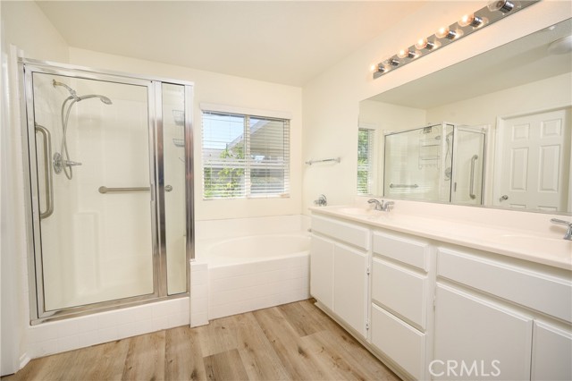 Desirable 4-Bedroom Single-Story Home with 3-Car Garage in North Fontana! Welcome to this beautifully maintained single-story home featuring an open-concept floor plan and fresh updates throughout. The interior boasts new paint and new luxury plank flooring and new carpet, creating a bright and inviting living space. Step inside to the spacious living and dining room area highlighted by a cozy fireplace, perfect for relaxing or entertaining. The kitchen features tiled countertops, abundant cabinet space, a breakfast bar, and a breakfast nook, and opens seamlessly to the family room with direct access to the covered patio. The large owner’s suite offers vaulted ceilings and a private ensuite bath with dual vanity sinks, a step-in shower, soaking tub, and a spacious walk-in closet. The home also features 3 generously sized secondary bedrooms (two with mirrored wardrobes). The bedroom that is adjacent to the living room can be used as a home office or guest room. There is an interior laundry room which also includes a washer and dryer. Large 3 Car Garage with Driveway and space for additional parking. Enjoy outdoor living in the large private covered patio, surrounded by mature trees and landscaping—perfect for relaxing or entertaining. Ideally located near shopping centers, restaurants, and schools, with easy access to the 210 Freeway, making it great for commuters. The home is also within walking distance to Almeria Park.