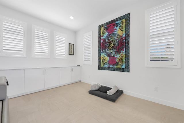 This two-story home features an open-concept layout where the kitchen flows seamlessly into the living and dining areas, with optional multi-stack sliding doors to create a true indoor/outdoor living experience. Upgrades include quartz countertops, large format tile flooring downstairs and in all wet areas, full plantation shutters throughout, and paid solar. A loft and separate cabana/game room provide flexible space for work or play, and the detached bonus room is perfect for a gym, office, or guest space. The backyard is fully landscaped with artificial turf, making it both functional and easy to care for.