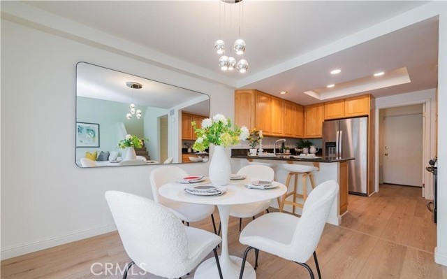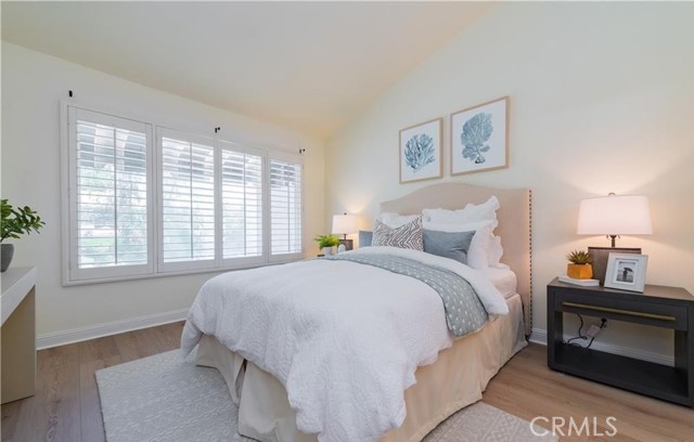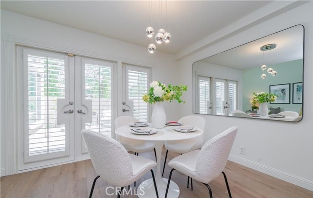 This exceptionally inviting home, seamlessly blends modern luxury with comfort.A beautiful abundance of natural light pours into the home, enhancing the stylish modern interior that creates a warm, welcoming, and peaceful atmosphere.The spacious entryway opens to a bright and airy floor plan, featuring a generous living room with soaring ceilings, a cozy fireplace, and a wall of windows that flood the space with abundant natural light. The newly installed modern flooring and paint enhance the brightness and warmth throughout the first floor. The separate dining area opens to both the living room and the stylish kitchen, and is elegantly connected to the expansive backyard through graceful French doors, creating a seamless indoor-outdoor dining experience. The kitchen boasts stunning granite countertops, durable solid wood cabinetry with build-in drawers, stainless steel appliances, and a breakfast bar, offering ample storage and inspiring culinary creativity. The indoor laundry room includes built-in cabinetry and provides direct access to the one-car garage. Upstairs, you’ll find two spacious, well-lit bedrooms and a modern bathroom. The primary suite includes a vanity area and a large walk-in closet, with windows overlooking the generous private backyard. The second bedroom is also filled with natural light, providing a comfortable and inviting space. The entire home is equipped with custom wooden shutters, allowing for precise light control while offering enhanced privacy. Additionally, the entryway includes a convenient powder room and a storage nook beneath the stairs, adding convenience . At the front of the property, you'll find a covered parking spot, with additional parking available just a few steps away. Nestled within the prestigious Irvine Unified School District, this home offers access to top-rated elementary, middle, and high schools. The community boasts an impressive array of amenities, including two sparkling swimming pools, two rejuvenating spas, tennis courts, a sand volleyball court, a soccer field, a playground, and BBQ areas. Conveniently located within walking distance to the UTC shopping center, golf courses, William R. Mason Regional Park, various scenic trails, and UCI, this property provides unparalleled ease of access to freeways, renowned beaches, and vibrant shopping destinations.