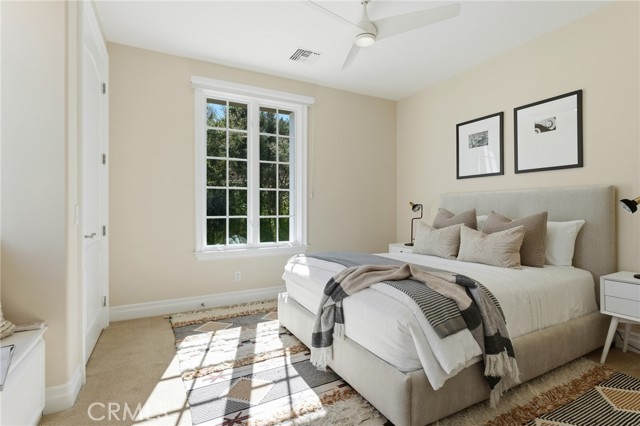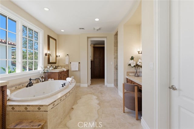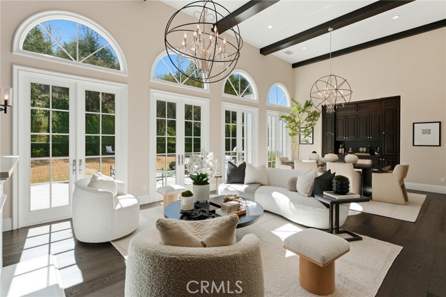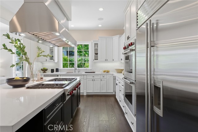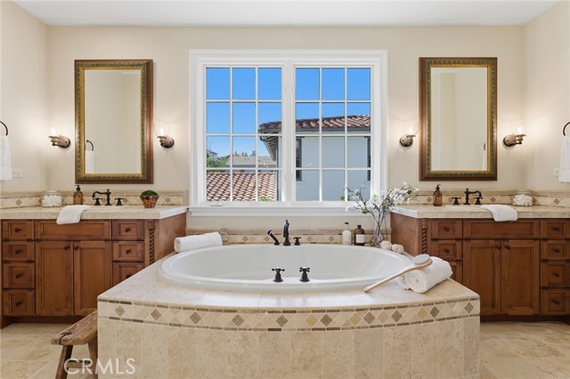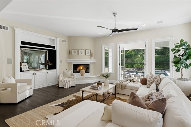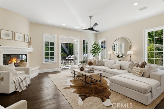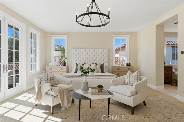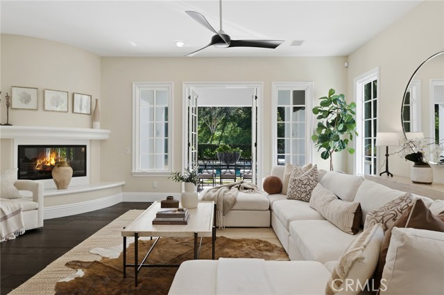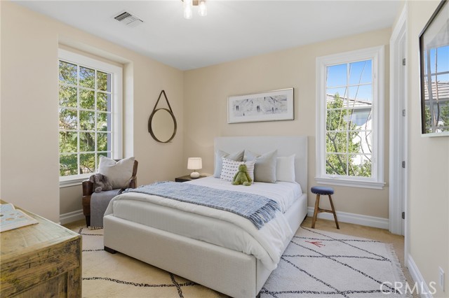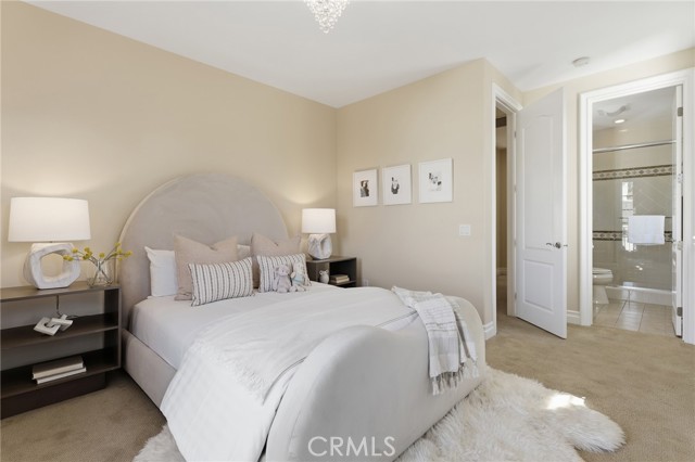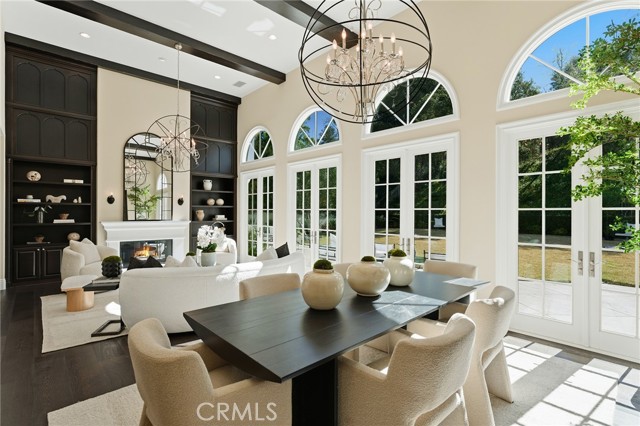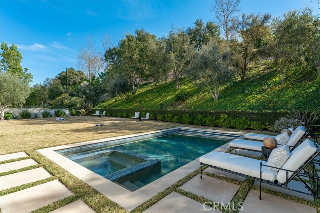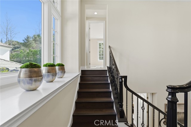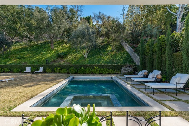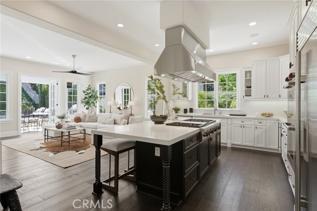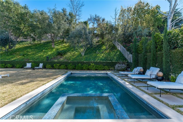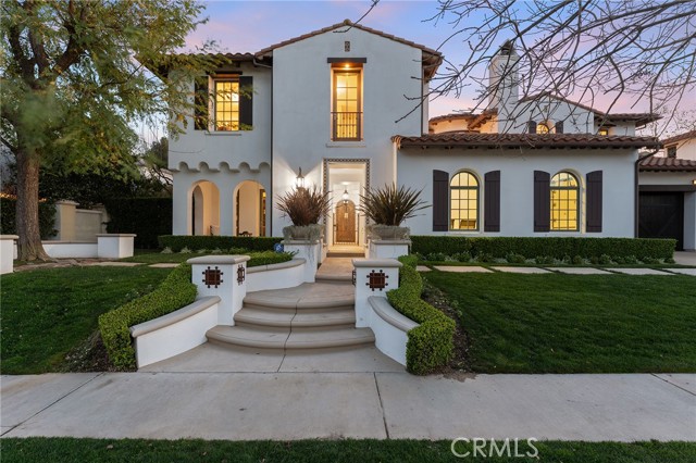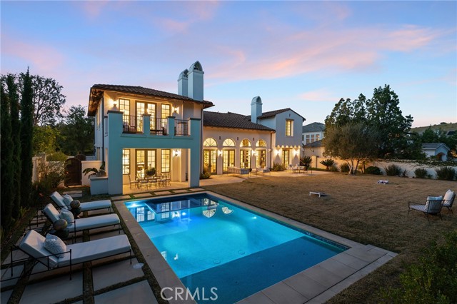 Step into timeless elegance in the Oaks of Calabasas. An immaculate New Millennium built Classic plan 2 with a Spanish flair. This home at nearly 5000 square feet sits on a private, oversized lot on one of the best streets in the neighborhood. Enter through an enchanting gated courtyard featuring a cozy fireplace and bistro lights for alfresco evenings. The open floor plan features a living room and dining room with soaring ceilings, big beautiful windows and French doors, a gorgeous fireplace, built in cabinetry and designer lighting. The kitchen has wonderful natural light and boasts high end stainless appliances, a wine fridge, quartz counters and a large center island with bar stool seating that opens to the warm family room with fireplace. There is an ensuite bedroom on the first level as well as a very generous sized office with built in cabinetry and French doors to the courtyard. Upstairs you’ll find 3 ensuite secondary bedrooms and a loft perfect for game nights or cozying up with a book for the evening. Finally the primary bedroom suite of your dreams. Entering through a private retreat you’ll find your way to the large open bedroom with fireplace, built in shelving and cabinets, French doors to the private balcony patio and a spa like bathroom plus a walk in closet you won’t soon forget. An entertainers yard with huge grassy area, pool with electric pool cover, large patio with lanai and built in BBQ. Located within the guard gated community of the Oaks with amenities such as a swimmers pool, state of the art gym, park, playground, tennis and pickleball courts. This is a one of a kind home in the most desirable community.