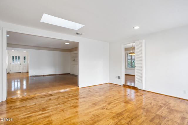 This updated, well-maintained, single-story home is located on a quiet, cul-de-sac near the popular Mission shopping district. Upon entering, the gleaming wood floor throughout welcomes one to the foyer that opens to the impressive living room featuring a fireplace, built-in shelves, and skylights. The adjoining family room is bright and airy with French doors open to the expansive backyard. The spacious formal dining room connects to both the family room and the updated kitchen which features granite countertop, stainless-steel appliances, and direct access to the laundry room with ample storage cabinets and side door leading to the driveway. There are 4 good-sized bedrooms; a centrally located hallway bath services the 2 bedrooms on the north wing, and the other 2 bedrooms have ensuite baths. Additional highlights include plantation shutters, recessed lighting, skylights, a smart home thermostat, newer A/C, and a newer roof. The home is also alarm-system ready. A two-car detached garage with automatic opener and additional driveway parking provide added convenience. Spacious, private backyard with concrete patio. Clean, shows well, and is in move-in condition with award-winning San Marino Schools!