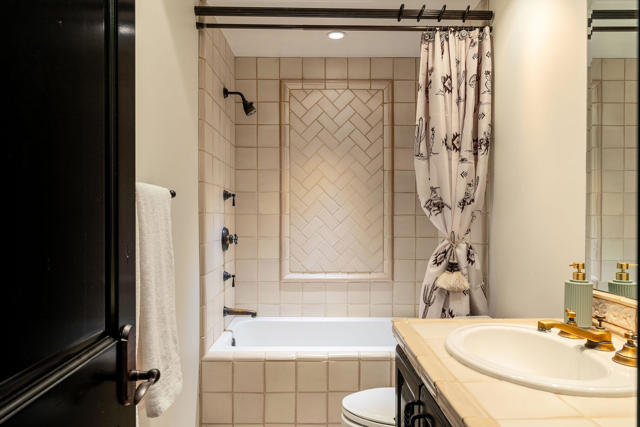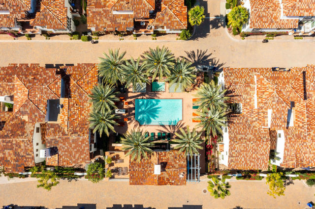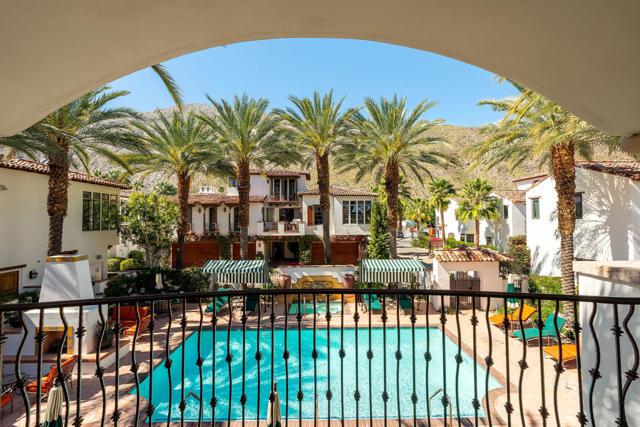 This beautifully updated former model home at St. Baristo has been thoughtfully redesigned with a contemporary aesthetic. As a desirable end unit, the home is filled with natural light and enjoys exceptional privacy with no direct views into neighboring units.This two-story townhome-style residence features three bedrooms and two bathrooms upstairs. The spacious primary suite includes a private en-suite bath and a charming east-facing sitting balcony, perfect for enjoying morning sunshine.The main floor offers an open-concept layout with a living room and family room surrounded by multiple south-facing windows that frame beautiful mountain views. The open kitchen flows seamlessly into the family room, which features a cozy fireplace, creating a warm and inviting gathering space.Adjacent to the kitchen is a bright breakfast area with buffet cabinetry, highlighted by new contemporary lighting fixtures. French doors lead from the breakfast area to a private south-facing patio, complete with a fireplace, BBQ area, and plenty of space for outdoor seating while taking in the stunning mountain scenery.Additional conveniences include:Powder Room on the main floor. Attached two-car garage with direct access from the kitchen areaLaundry room and built-in desk workspace just inside the garage entryResidents enjoy access to a large central courtyard with guest parking, which leads to the resort-style community pool and observation deck, offering a relaxing and scenic setting.