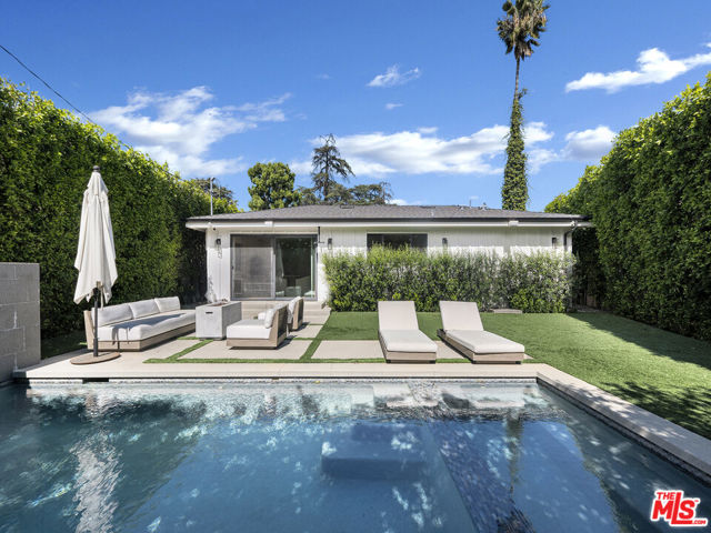 Beautiful single-story 3 bedroom, 3.5 bathroom modern farm home. Open floor plan with large fully equipped Chef's kitchen that boasts white and black quartz counter tops, stainless steel appliances, 36-inch gas range, and white Shaker cabinets. The great room adjacent to the kitchen is light and bright and opens to a tranquil outdoor patio which features a sparkling pool with waterfall feature and spa. The master bathroom includes an oversized shower. 2 additional bedrooms each with their own private en-suites complete the home. Engineered wood flooring is showcased through the home. Sited on a picturesque corner lot and located close to Ventura Blvd's restaurant row and fashionable shops, neighborhood parks, and within proximity to all the valley Studios. This home is also situated in the desirable pocket of Chandler Estates.