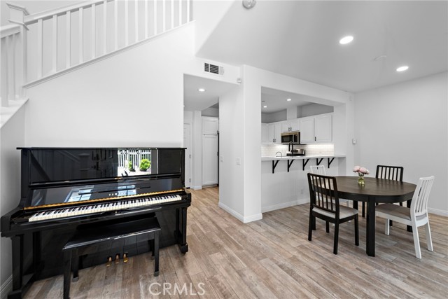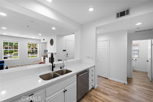 Welcome to 15 Strawflower Street, a desirable corner end unit in the Charleston Place neighborhood of Ladera Ranch’s Avendale Village. This beautifully updated townhome offers abundant natural light, enhanced privacy with only one attached neighbor, and a spacious gated front patio perfect for relaxing or entertaining. The open-concept floor plan begins with a dramatic two-story entry and flows into comfortable living and dining areas centered around a cozy fireplace. The updated kitchen features white cabinetry, quartz countertops, a classic subway tile backsplash, stainless steel appliances, and a built-in pantry, combining style and functionality. Wood-look tile flooring extends throughout the main level, which also includes a powder room and direct access to the attached two-car garage. Upstairs, the home offers three bedrooms and two-and-a-half bathrooms, including a spacious primary suite complete with a charming window seat, walk-in closet, and private bathroom featuring dual sinks, a soaking tub, and a separate shower. Recent improvements include a newer A/C system, water heater, and dishwasher, along with fresh interior paint, recessed LED lighting, and updated fixtures throughout. Ideally located just steps from the Avendale Clubhouse, residents enjoy resort-style amenities including a pool, lap pool, children’s pool, and splash pad. The home is also adjacent to Founders Park, home to the weekly Sunday Farmers Market and the annual Fourth of July fireworks celebration. Living in Ladera Ranch means access to an exceptional community lifestyle with numerous parks, scenic trails, top-rated schools, and convenient proximity to shopping, dining, and the nearby Southern California coastline.