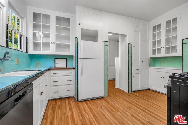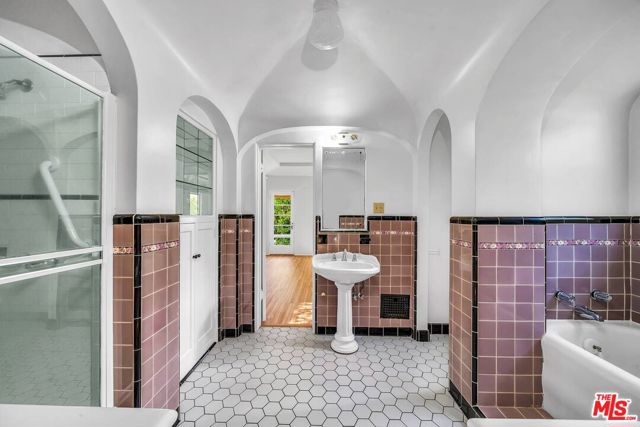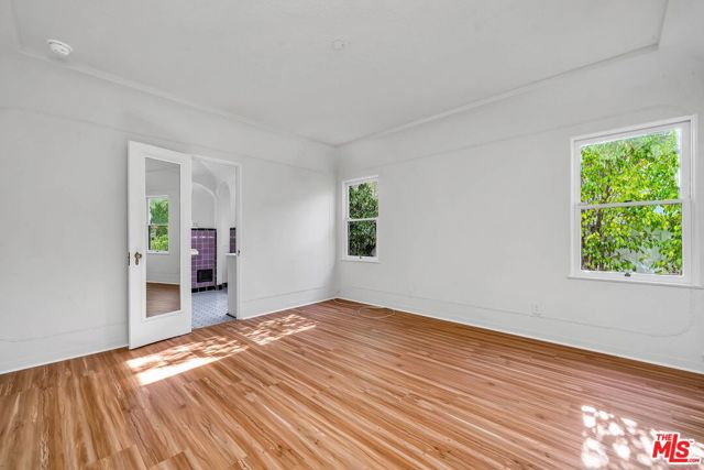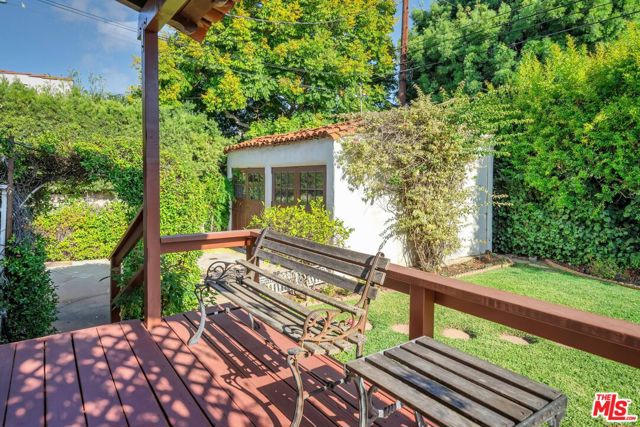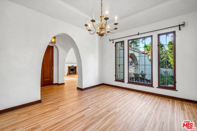This timeless 1920s charming Spanish is set on a beautiful residential street in an unbeatable Westwood location. Entering through the covered breezeway is the large living room with exposed stenciled beams, 11-foot ceilings, arched bookshelves and wood-burning fireplace, stunning custom stained glass window that floods the room with sunlight. Dramatic Spanish archways, mahogany doors and custom built-ins with vintage hardware can be found throughout. Formal dining room, breakfast room that doubles as a wonderful home office. The spacious primary bedroom opens to a raised deck overlooking the verdant and ultra-private backyard, wall unit A/C, An oversized two-car garage, circular driveway in addition to a secondary driveway. Just minutes to Beverly Hills, UCLA, Century City, freeways and public transportation.