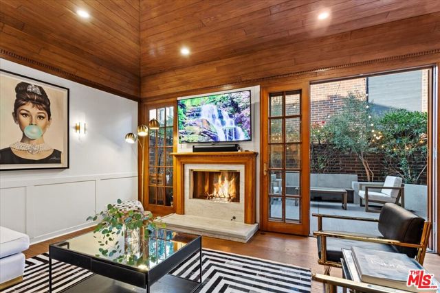 Beautifully updated Beverly Hills townhouse offering warmth, character, and timeless style. This front-facing end unit features 3 bedrooms, 3 baths, and over 2,000 sq ft on the coveted Burton Way side, with no shared wall on the west side for added privacy. Dramatic wood-beamed ceilings, rich hardwood floors, and a sun-filled living room with fireplace open to a private outdoor patio. Thoughtfully renovated kitchen with white cabinetry, designer finishes, and a clean modern layout ideal for entertaining. Additional highlights include remodeled bathrooms, a spacious primary suite with a brand-new custom closet and en-suite bath, in-unit laundry, and a private garage with two side-by-side non-tandem parking spaces. Bonus features include a BBQ, alarm system, brand-new AC and heat, a smart home camera system throughout the home and wireless Lutron controls. Furnished option available at adjusted price. Prime Beverly Hills location.
