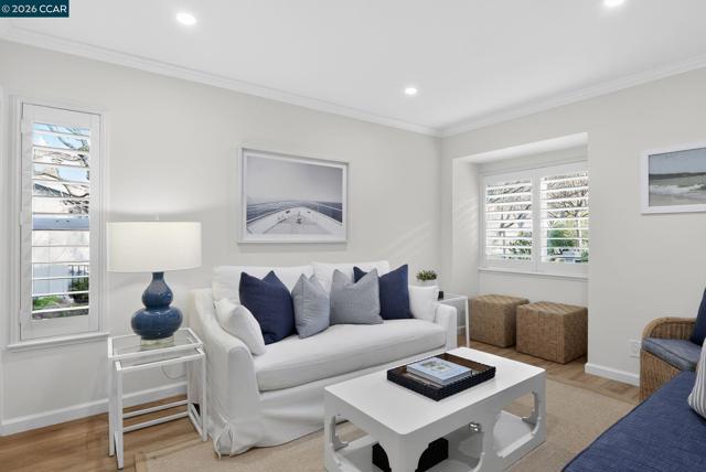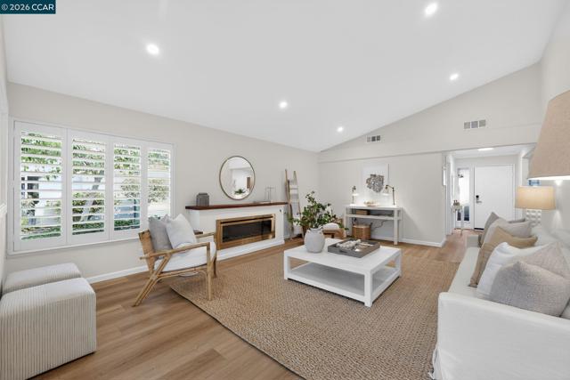 This beautifully updated Whitney floor plan showcases a fresh, modern interior in a prime central location. Featuring 2 spacious bedrooms, 2 stylish bathrooms, and a convenient den near the entrance, this layout is both functional and welcoming. The bright living room features vaulted ceilings with recessed lighting and a cozy electric fireplace, seamlessly leading into a sunroom with view of trees. Culinary enthusiasts will love the eat-in kitchen, featuring floor-to-ceiling cabinets, new granite countertops, and stainless steel appliances. The elegant formal dining room adds a touch of sophistication. Both bathrooms have been tastefully renovated, featuring marble countertops and accessible showers. The primary bathroom is equipped with a self-cleaning Smart toilet. The oversized bedrooms offer ample closet space and an indoor laundry room. Attached garage with extra storage. Enjoy the unbeatable convenience of being just a short distance or golf cart ride from Rossmoor's Event Center, Dollar Clubhouse, Creekside Restaurant, and two beautiful golf courses!