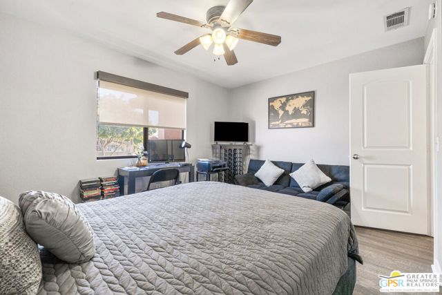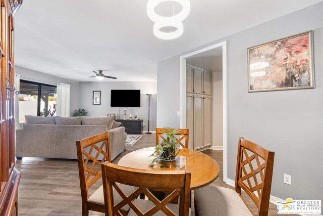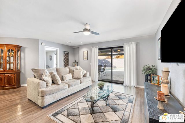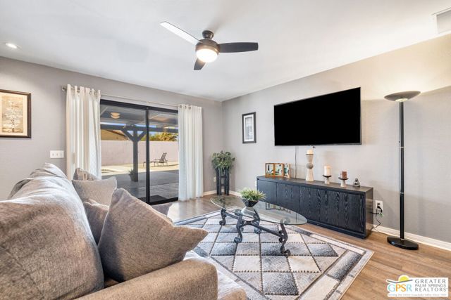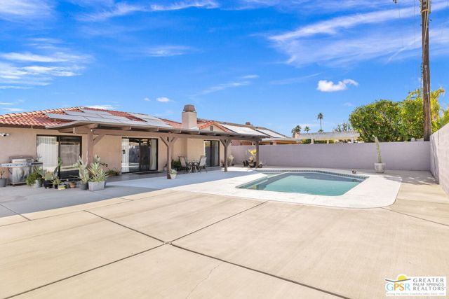 Well maintained 3 bedroom, 2 bath home offering 1,516 sqft of comfortable living in Cathedral City. Situated on a desirable corner lot, this home features an open living and dining area with updated flooring and large sliding doors leading to the backyard. The kitchen offers ample cabinetry, generous counter space, and stainless steel appliances. The primary suite includes direct backyard access, while two additional bedrooms provide flexibility for guests, a home office, or additional living space. The private backyard features a pool, hot tub, and covered patio, ideal for relaxing or entertaining. Additional highlights include solar, a gated driveway, and a two-car garage. Offered furnished, making it move-in ready or ideal as a desert retreat. Conveniently located near shopping, dining, golf, and just minutes from downtown Palm Springs.