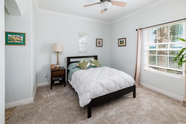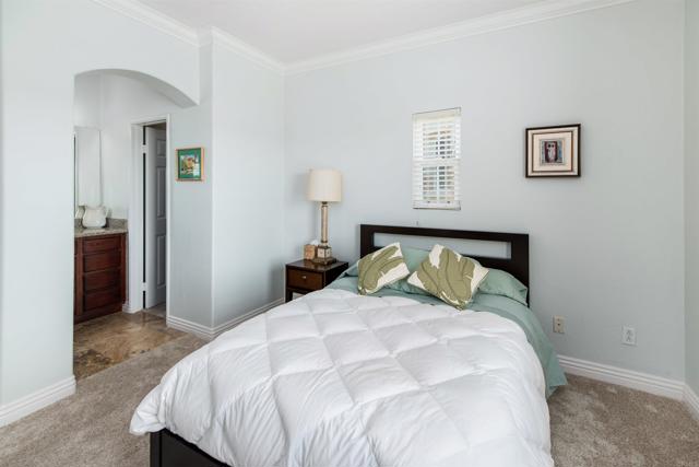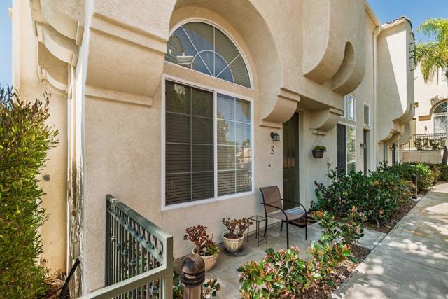 Welcome to 3816 Mykonos Lane Unit 3, a beautifully maintained end-unit townhome tucked along the peaceful edge of the highly sought-after Andalucía community in Carmel Valley, offering exceptional privacy and a tranquil setting. This gorgeously maintained neighborhood features resort-style amenities including a pool, spa, fitness center, clubhouse, and BBQ areas, all surrounded by lush landscaping. Upon entry, you’re welcomed into a versatile bonus room with soaring ceilings and dramatic arched windows that flood the space with natural light, creating the perfect setting for a home office, den, media room, or creative space. The home’s thoughtfully designed split-level floor plan then leads up to the main living level, where large windows and an open layout create a bright and inviting atmosphere filled with natural light. The living area features warm wood flooring, recessed lighting, and a cozy fireplace with a stone surround, while the kitchen offers granite countertops, tile flooring, and ample cabinetry. All three bedrooms are located upstairs, providing comfortable separation from the main living areas. The primary suite includes its own en-suite bath featuring a walk-in tiled shower with thick 3/8-inch glass enclosure, while the two secondary bedrooms share a Jack-and-Jill bathroom. The upstairs hallway also features extensive built-in cabinetry for linens and storage, along with generous closet space throughout the home. Additional highlights include a direct-access two-car garage and the added privacy of an end-unit location. Ideally located in the heart of Carmel Valley, the home is walkable to the highly acclaimed Carmel Del Mar Elementary, Carmel Valley Middle School, and Torrey Pines High School, some of the most sought-after schools in San Diego. The area also offers excellent walkability to parks, shopping, dining, and everyday conveniences, with easy freeway access and the beaches of Del Mar just minutes away. A rare opportunity to enjoy privacy, abundant natural light, and the best of Carmel Valley living within the sought-after Andalucía community.