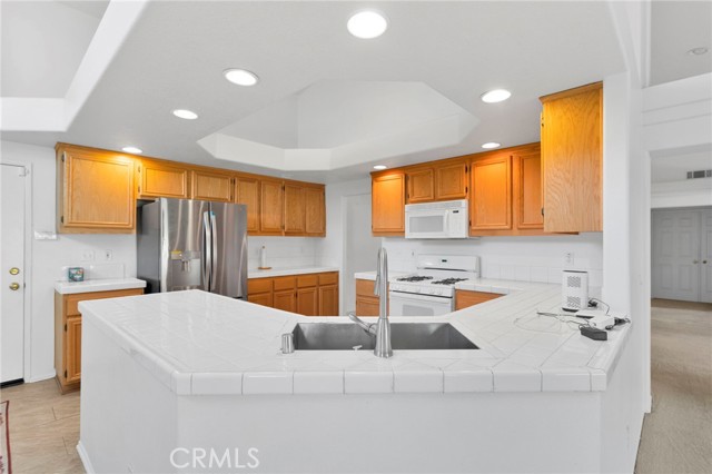 Welcome to this beautiful single-story cul-de-sac home in Victorville offering space, charm, and an ideal layout for both everyday living and entertaining. As you arrive, the home’s excellent curb appeal, mature landscaping, and large driveway with a three-car garage create an inviting first impression. Step inside through the double-door entry to discover soaring vaulted ceilings, abundant natural light, and expansive living spaces. The formal living and dining areas provide an elegant setting for gatherings, highlighted by decorative columns, chandeliers, and large windows overlooking the backyard. Just beyond, the spacious family room features a cozy fireplace and sliding doors that open to the covered patio. The kitchen is designed for functionality and connection, featuring: Generous cabinetry and counter space A center island with sink Stainless steel refrigerator Recessed lighting Breakfast nook with large windows The open concept makes it easy to entertain while staying connected with guests or family. The primary suite offers a peaceful retreat with ample space and backyard views, while the additional bedrooms provide flexibility for family, guests, or a home office. Step outside to a large private backyard with a covered patio, perfect for outdoor dining, barbecues, or relaxing evenings. Additional highlights include: ? Single-story layout ? High ceilings ? 3-car garage ? Quiet cul-de-sac location ? Spacious backyard ? Great natural light Located close to schools, parks, shopping, and major commuter routes, this home offers both convenience and comfort in one of Victorville’s desirable neighborhoods.
