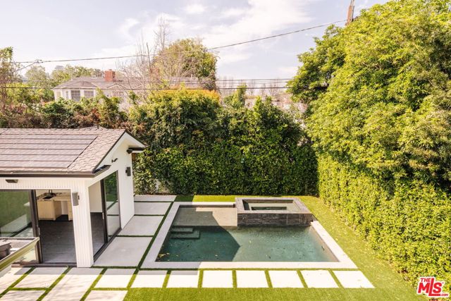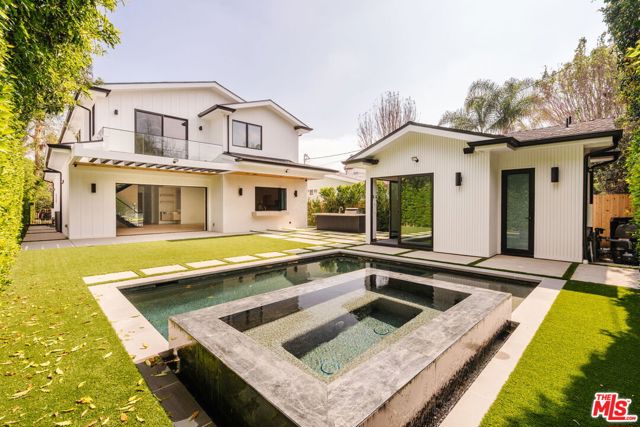 Tucked away on a quiet cul-de-sac in the pristine Colfax Meadows neighborhood of Studio City, this gated and newly constructed modern farmhouse offers refined design and effortless indoor-outdoor living. Your home features approximately 3,800 square feet of living space with five spacious bedrooms and five and a half bathrooms, wide plank white oak floors, abundant natural light, and a fully integrated Elan smart home system. The open floor plan flows effortlessly and is centered around a beautiful chef's kitchen with a full suite of Thermador appliances and a service window that opens up directly to the backyard, making indoor-outdoor living and entertaining feel seamless. The backyard is designed to be enjoyed year round with a sparkling heated pool and spa that can also be used as a cold plunge, covered patio, and built in BBQ area. A separate pool house with its own full bathroom offers a great space for guests, a home office, or additional lounge area. Upstairs, the primary suite serves as a peaceful retreat with a spacious walk in closet and a spa like bathroom. Located within the Carpenter Community Charter School district and just minutes from the best restaurants, shops, and cafes in Studio City, this home offers modern living in one of the Studio City's most desirable neighborhoods.
