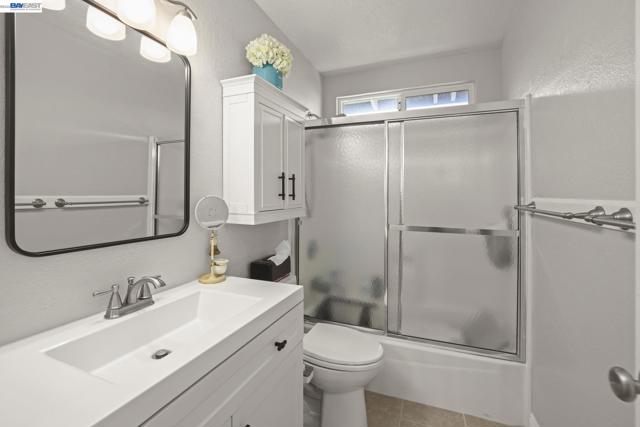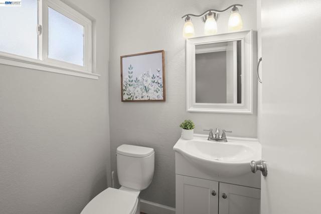 Welcome to this beautifully maintained two-story townhome style condo offering 3 bedrooms, 2.5 baths, and approximately 1,242 sq ft of comfortable living space. The home features updated flooring throughout, a bright open floor plan, and inviting indoor-outdoor living. The main level offers recessed lighting and a spacious living and dining area centered around a stone fireplace. Large windows and a sliding glass door bring in natural light and provide seamless access to the private backyard patio, perfect for relaxing or entertaining. The kitchen offers generous counter space, ample cabinetry along with a convenient pass-through to the dining area. Upstairs, the primary suite features abundant natural light and an en-suite bath with dual vanities and a tiled walk-in shower. Additional bedrooms are well-sized and versatile for guests, family, or a home office. Enjoy the private backyard patio with low-maintenance landscaping. Residents also enjoy access to a community pool and a nearby park with playground. Includes an additional assigned parking space next to the driveway and easy access to I-580 and I-680.