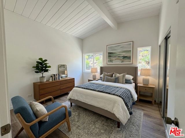 Rare Marquez Knolls opportunity to lease a fully remediated and refreshed 3-bedroom, 2-bath home with a den that can serve as an office or media room. It is situated in an enclave where the majority of the homes remain standing following the events of January 2025. Enjoy the peace and serenity of an intact, established neighborhood on a quiet, low-traffic, well-maintained street. With both ocean and mountain views, the home offers abundant natural light, high vaulted beamed ceilings, and an open floor plan. The property has been comprehensively remediated (report and completion certificate available) and features brand-new wood laminate flooring throughout, fresh interior and exterior paint, all new exterior doors and windows, and a completely new HVAC system and ducting for year-round comfort. Generously sized primary and secondary bedrooms, an expansive living room, and a kitchen that opens to the adjacent family room and backyard create seamless daily living, family connection, and entertaining options. Experience classic California indoor-outdoor living with a spacious backyard and wraparound patio. Conveniently located near St. Matthew's, Palisades High and other local schools, Caruso's Palisades Village, beaches, and scenic hiking trails, with immediate access to the amenities of neighboring Santa Monica, Brentwood, and Malibu.