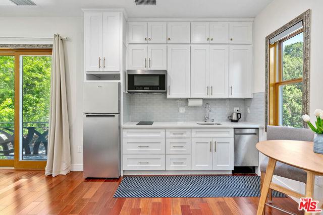 Newly remodeled ADU in the hills of Encino. Located on a quiet Cul-de-sac in a prime location of Encino surrounded by multi-million dollar estates. Enter through a side gate into a garden and up a stairwell into a bright a beautiful studio with 11 + foot ceilings. Brazilian oak floors, high end finishes, brand new appliances. Central air and heat, combination oven, microwave, air fryer and electric stove. A short drive to Ventura and close proximity to Bel Air and Westside.