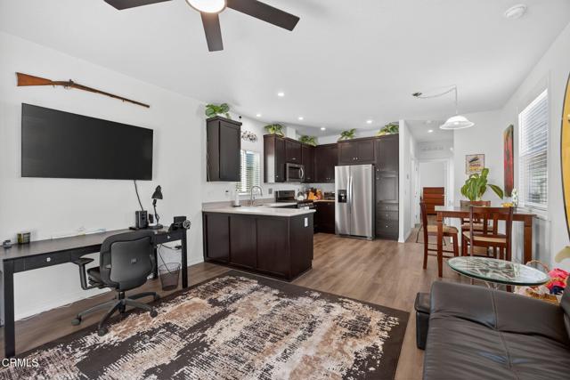 Modern Comfort in the Heart of the Ventura Valley! Discover the perfect blend of modern convenience and serene living in this beautifully maintained, nearly-new home located in the desirable Arroyo Mobile Home Park (55+ community). Built in 2024, this thoughtfully designed residence offers an open and airy floor plan with high ceilings, creating an inviting space that feels both spacious and cozy. The heart of the home is a sleek, custom kitchen that flows seamlessly into the living area, perfect for relaxed daily living or entertaining guests. The home features one generously sized bedroom with ample storage, a dedicated laundry area, and the comfort of central heating and air conditioning to keep you comfortable year-round. Step outside to enjoy the beautiful Ventura weather on your private covered patio--an ideal spot for your morning coffee or unwinding after a day of exploring. Nestled in a peaceful setting, residents enjoy access to a quiet community atmosphere with close proximity to hiking and easy access to both Ventura beaches and the charm of Ojai. This is an exceptional opportunity for an effortless, low-maintenance lifestyle in a prime Ventura location.