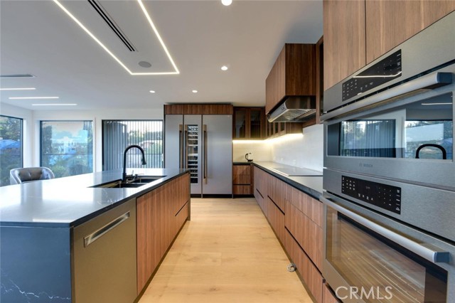 Welcome to your luxurious retreat in the prestigious hills of Woodland Hills, California. A spacious and fully furnished property boasting stunning views of the Santa Monica Mountains and conveniently located just south of Ventura Blvd., providing easy access to all that greater Los Angeles has to offer. Situated within a 1.5-mile radius of the 101 freeway, you can reach Hollywood and Downtown LA within 30 minutes, making it the perfect base for exploring the city. Additionally, you're only 5 minutes away from the upscale shopping and dining experiences at Westfield Topanga and The Village. As well as Iconic California beaches within a 20 minute or less drive. The multi-level smart home boats with it two separate living units. An upper unit containing two bedrooms, each with their own bathrooms and closets, along with a spacious living room, kitchen, office, as well as washing and drying. The lower-level unit boasts a guest suite complete with a kitchen, bathroom, and laundry machine. While both units are available, this specific listing pertains to the upper unit.