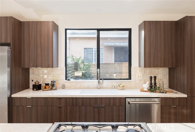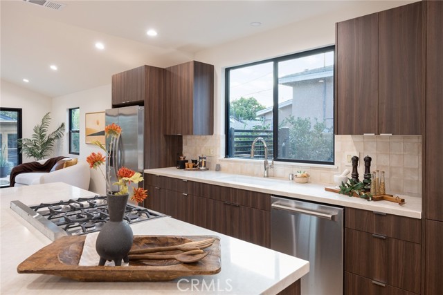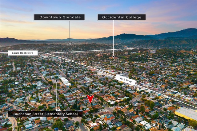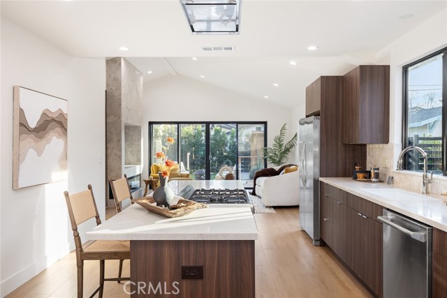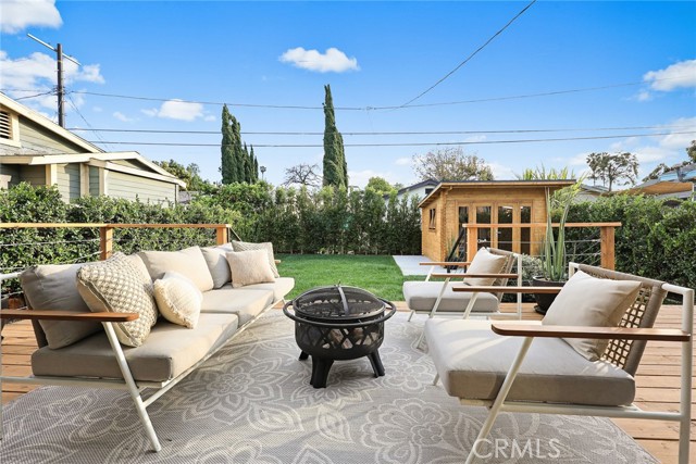 Welcome to 5144 Buchanan Street, a completely remodeled and thoughtfully reimagined home in the heart of Highland Park, offering the perfect blend of modern luxury, stylish design, and an unbeatable location. This turnkey residence features 2 spacious bedrooms, 2 full bathrooms, and 1,369 square feet of beautifully upgraded living space, plus a detached bonus office/workstation in the backyard—ideal for today’s work-from-home lifestyle. Situated on a generous 4,795 square foot lot, the property is located just two blocks south of York Boulevard, placing you within easy walking distance of Highland Park’s trendiest restaurants, vibrant coffee shops, boutique shopping, and neighborhood parks. Step inside to discover a bright open-concept floor plan with high ceilings throughout, creating an airy and spacious feel while seamlessly connecting the living, dining, and kitchen areas—perfect for both everyday living and entertaining. The interior showcases brand-new wide-plank waterproof laminate flooring, fresh paint throughout, recessed lighting, and abundant natural light. A sleek electric fireplace anchors the living room, adding warmth and a contemporary focal point. The fully renovated kitchen is designed to impress, featuring new high-end appliances including a refrigerator, gas range, oven, and dishwasher, along with quartz countertops, custom cabinetry, and a spacious breakfast bar/island that makes the space both functional and inviting. The primary suite offers a relaxing retreat with a custom walk-in closet and a beautifully appointed bathroom featuring an oversized soaking tub and shower combination. Large sliding glass doors off the living room open to a private backyard oasis, complete with a custom wraparound wood deck, eco-friendly landscaping, and tasteful outdoor lighting—perfect for entertaining or unwinding outdoors. The detached office/workstation provides a versatile bonus space ideal for remote work, a creative studio, or gym. Additional highlights include an automatic front gate and a long multi-car driveway providing secure off-street parking. This completely remodeled Highland Park gem combines modern upgrades, indoor-outdoor living, and a prime location in one of Los Angeles’ most sought-after neighborhoods.