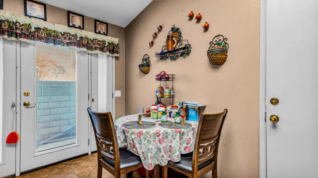 Corner home featuring 4 bedrooms and 2 bathrooms with a spacious layout that includes two separate living areas, offering plenty of room for relaxing or entertaining. The backyard is designed for outdoor enjoyment with a pool, spa, and a covered patio BBQ area, perfect for gatherings and warm desert evenings. The property also offers generous front parking space, providing plenty of room for multiple vehicles. Additional features include an aluminum patio cover and leased solar panels at $180 per month, which the new owner will assume. This home offers comfort, space, and great outdoor amenities, making it a wonderful opportunity for its next owner.