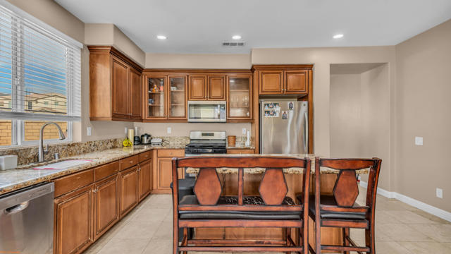 For lease in the beautiful community of Talavera. This spacious two story home offers 5 bedrooms and 3 full bathrooms and is available for immediate move in. All applicants must apply through RentSpree, and the renter is responsible for the application fee. Move in ready home featuring a bright and functional layout perfect for comfortable living. The home offers two living spaces an oversized lot, four spacious bedrooms plus an additional entertainment room that can also be used as a fifth bedroom, office, or flex space. The kitchen is designed for both style and convenience with granite countertops, a large pantry, new stainless-steel appliances, and tile flooring for easy maintenance. The primary bedroom features new carpet and private access to the beautifully manicured backyard. The primary bathroom includes tile flooring, a separate bathtub and walk-in shower, dual sinks, and a private toilet room. Upstairs, the entertainment room showcases elegant wood-style tile flooring, providing the perfect space for a second living area, media room, or game room.Located in the desirable Talavera gated community, this home offers space, comfort, and convenience in a well maintained neighborhood with parks.
