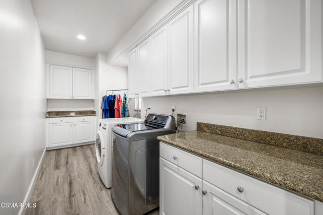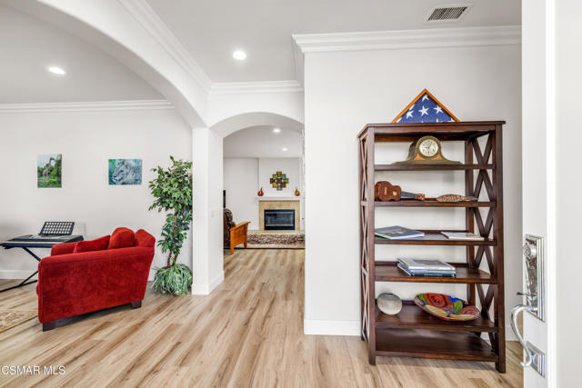 Located at the end of an exclusive cul-de-sac of just 5 homes, this home is one of a kind! Conveniently close to shopping, restaurants, gyms, parks, trails and more. Built in 2003, it's 3000+ square feet features 3 spacious bedrooms plus loft/den which can easily be converted to the 4th bedroom. Step through the double front doors to a welcoming foyer that leads into the heart of the home. The formal living and dining rooms offer elegant spaces for entertaining and could serve as a home office or flex space to suit your needs. The spacious open great room combines the kitchen and family room, anchored by a charming gas fireplace that makes it perfect for everyday living and entertaining. The gourmet kitchen has granite counters with a center island & breakfast bar, double ovens, new stove top, microwave, dishwasher and refrigerator. In addition, there's a large walk-in pantry and two separate counters/butler's pantry for meal prep and set up for a party. The primary suite includes a huge walk-in closet and luxurious bathroom with dual sinks, separate shower & deep tub. The expansive laundry room is located alongside the bedrooms. Plenty of cabinets throughout this home provide lots of storage space. The secluded large backyard offers plenty of space for outdoor entertaining and relaxing. This home has been meticulously & lovingly maintained with extensive improvements to enhance and keep it functioning at its best. Improvements include smart home devices, newer appliances including HVAC & Water Heater. The yard has fire hardening landscape and new vinyl fencing all around. There's plenty of room for parking in the attached 3-car garage and wide driveway. Feeds to the top-rated schools of Conejo Valley Unified School District. This home offers the perfect blend of comfort and convenience that makes Newbury Park such a desirable place to live!