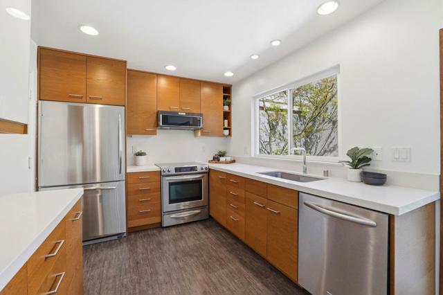 Welcome to this beautifully updated single-level home in the desirable Los Gatos Village community. This bright & inviting 2-bedroom, 2-bathroom residence offers approximately 1,015 sq ft of comfortable living space w/ thoughtful updates throughout. The modern kitchen features sleek custom cabinets, Caesarstone countertops, updated appliances, tile flooring with a heated option-open dining area with direct access to a private enclosed patioperfect for outdoor dining, relaxing, or entertaining. The spacious primary suite also enjoys patio access, creating a seamless indoor-outdoor living experience. New closet doors. Primary bath boasts stylish tile shower, tile flooring, & quartz countertops. New flooring in the hall bath, vanity, light fixture & mirrors giving the home a fresh, contemporary feel. Additional highlights include central air conditioning, an attached two-car garage, and a convenient laundry area located in the garage. Residents enjoy the well-maintained Los Gatos Village community, ideally located close to downtown Los Gatos, scenic walking & biking trails, shopping, dining, and everyday amenities. Top schools-Alta Vista Elementary, Union Middle & Leigh High School. This is a wonderful opportunity to enjoy comfort, convenience, and the vibrant Los Gatos lifestyle.