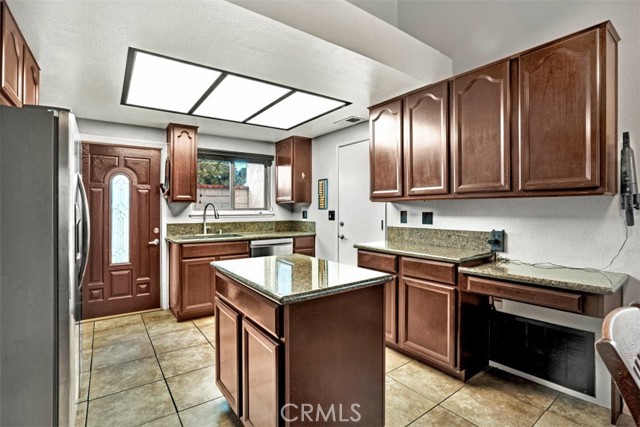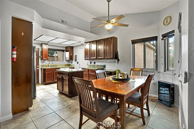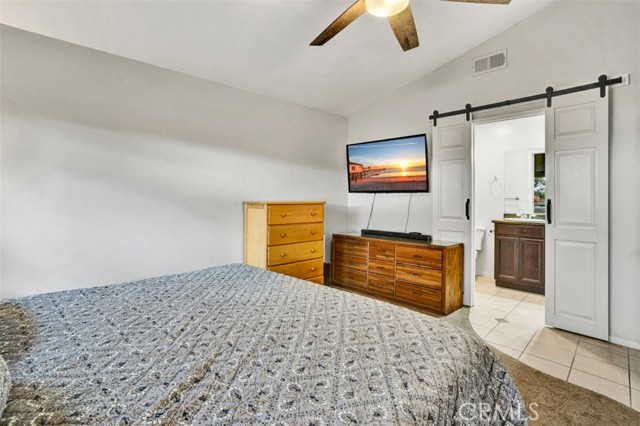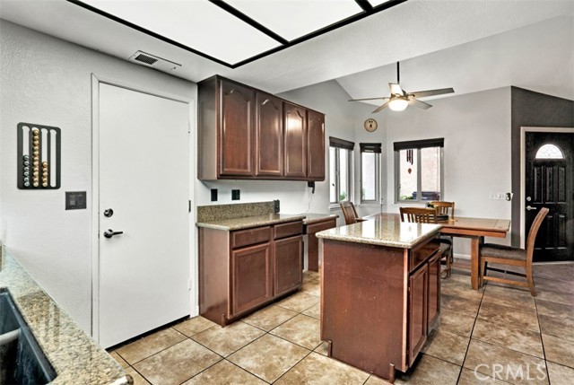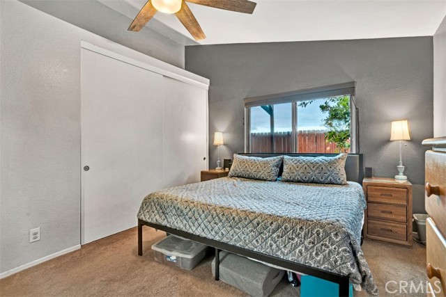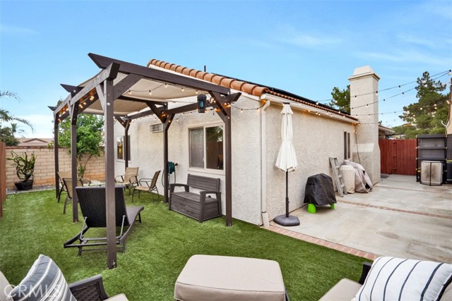 Welcome to this beautifully upgraded single-story home, perfectly situated on a private corner lot in Menifee. This move-in-ready residence features an open, airy layout amplified by vaulted ceilings and an abundance of natural light. Durable tile flooring spans the main living areas, flowing seamlessly into the upgraded kitchen which boasts granite countertops and modern cabinetry—premium finishes that are mirrored throughout both bathrooms. The primary suite offers a quiet retreat, complete with a convenient walk-in shower. The outdoor spaces are a true highlight of the property. The backyard has been fully redone to create a cozy, enclosed sanctuary featuring low-maintenance turf and a shaded canopy for year-round enjoyment. A separate, dedicated BBQ area is positioned just off the kitchen, making outdoor cooking and entertaining effortless while keeping the rest of the yard private. Additional high-value upgrades include fully owned solar panels, a whole-house fan for energy efficiency, and a 220v outlet in the garage. Combining functional upgrades with a thoughtful floor plan, this home offers an exceptional opportunity for a first-time buyer or someone looking to downsize into a turnkey property.
