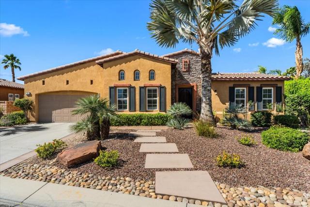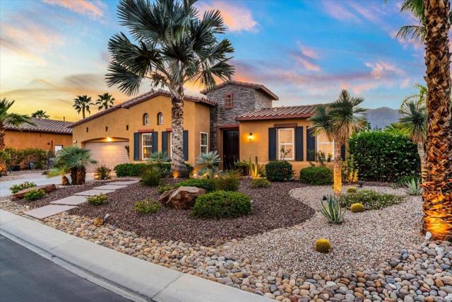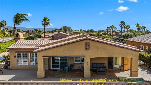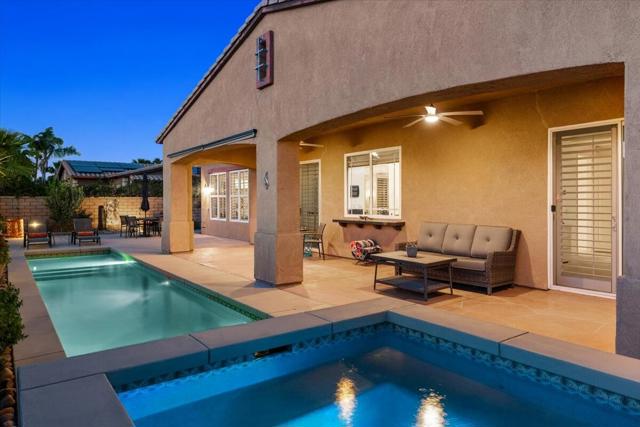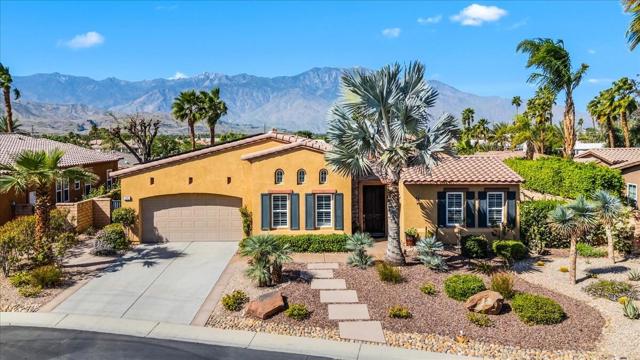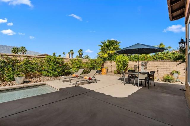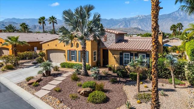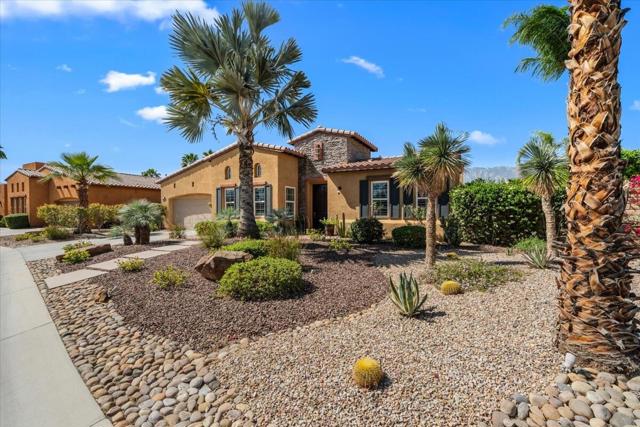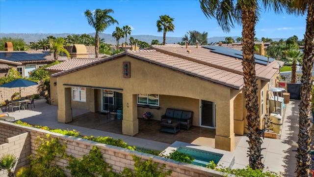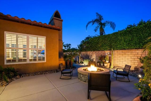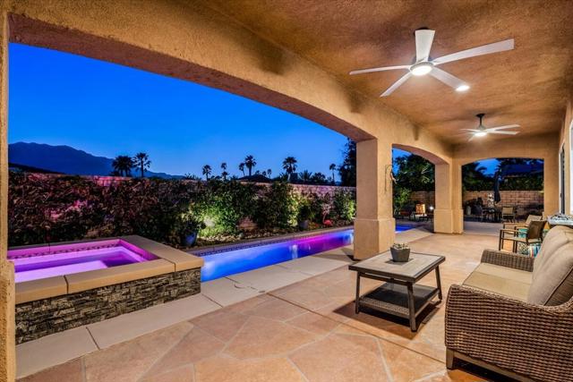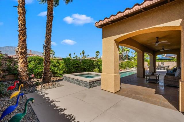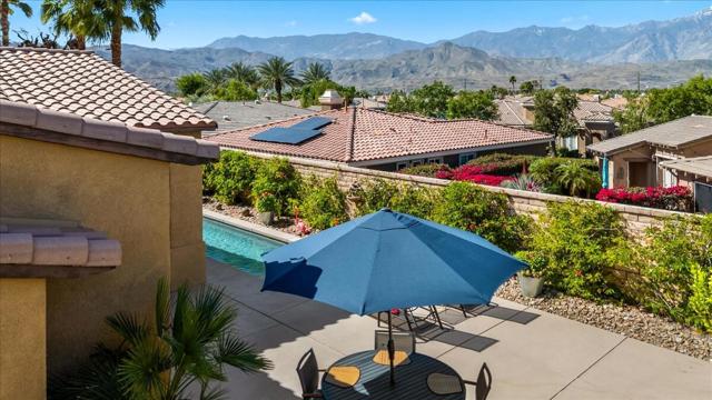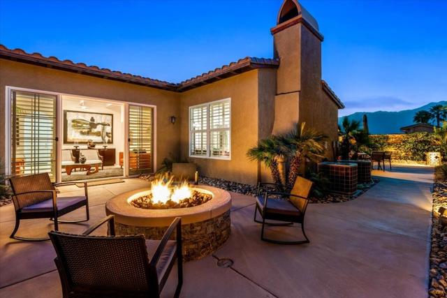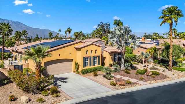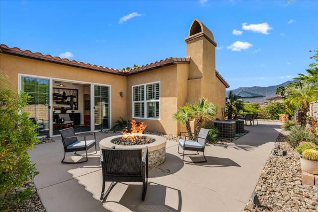 Tranquil Oasis in the exclusive gated enclave of Santo Tomas in Rancho Mirage built around a central 9-acre private lake offering the ultimate in Desert Luxury Living. This contemporary desert retreat is light, bright, and beautifully designed. Perfect for entertaining or just taking in the expansive mountain views. The primary suite is a serene escape featuring a generous walk-in closet, spa-like walk-in shower, and dual vanities designed for comfort and convenience. The 3rd bedroom can be used as a casita. Every space in the home is thoughtfully positioned to maximize natural light and seamless indoor-outdoor living. Step outside to your private backyard oasis where unobstructed mountain views provide a breathtaking backdrop. Enjoy the beautifully finished pool and spa, gather around the firepit under the desert sky, and relax to the soothing sounds of the water feature. The low-maintenance desert landscaping enhances the home's clean contemporary aesthetic. 27 fully owned and paid for Solar Panels w/10.8KWH. Residents enjoy mountain views with full lake rights, along with Social & Sports Membership at the adjacent Mission Hills Country Club offering tennis, croquet courts, pickleball, dining, and an active social lifestyle. Also, add-on an additionally paid Golf Membership offering world-class golf. Highly desirable and ideally located, this home captures the essence of a true retreat and refined desert living. Fee land (you own the land).