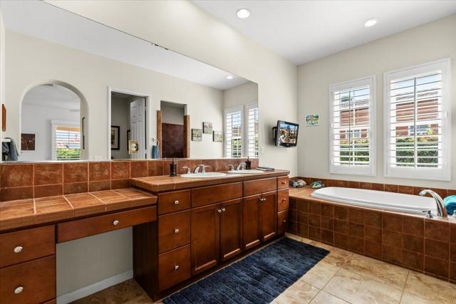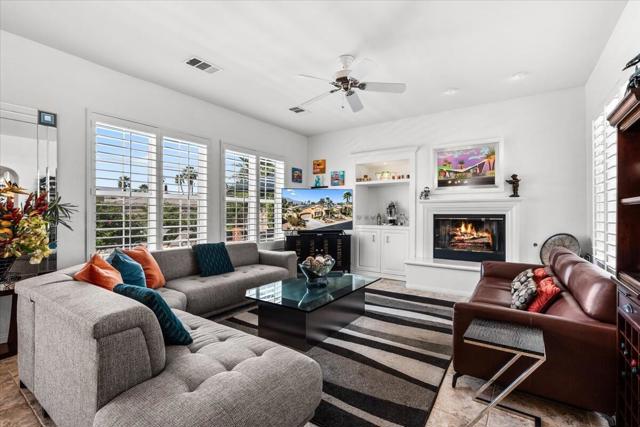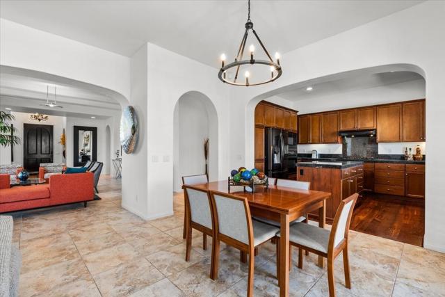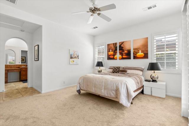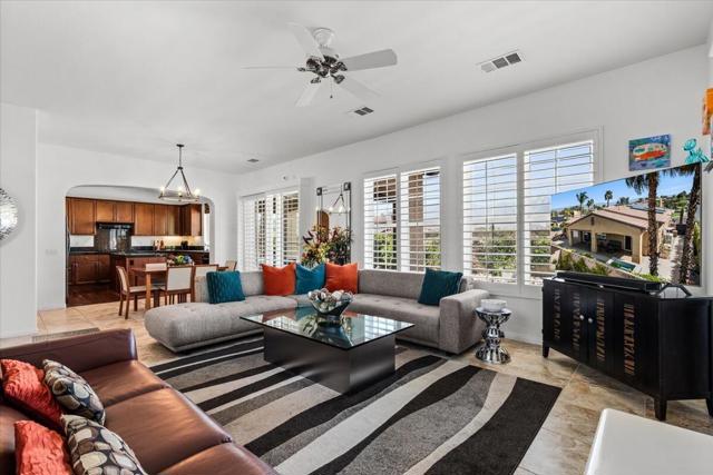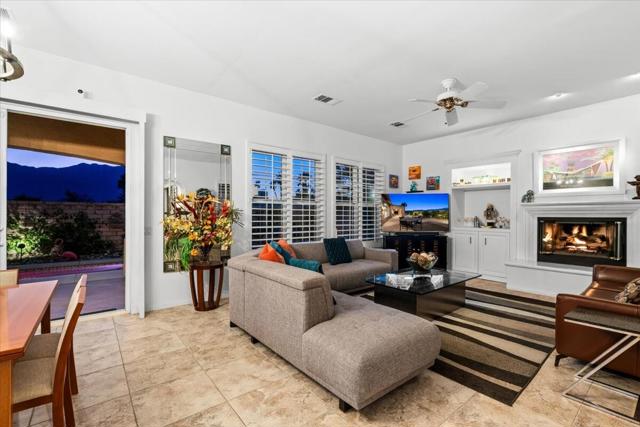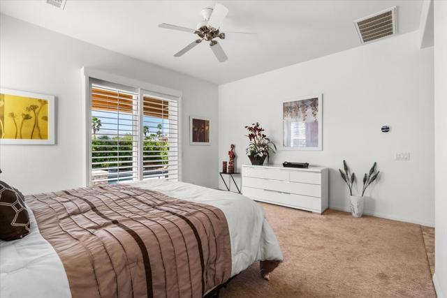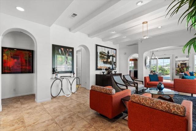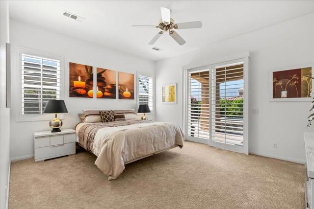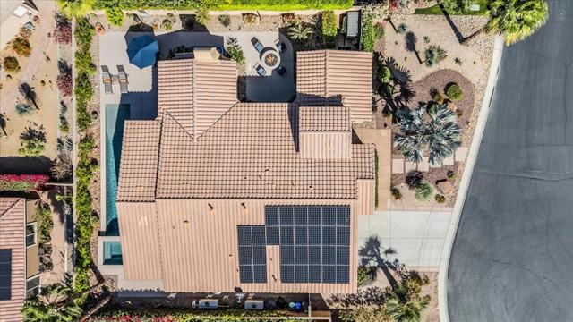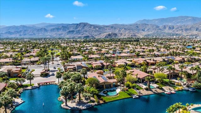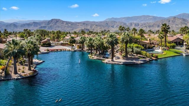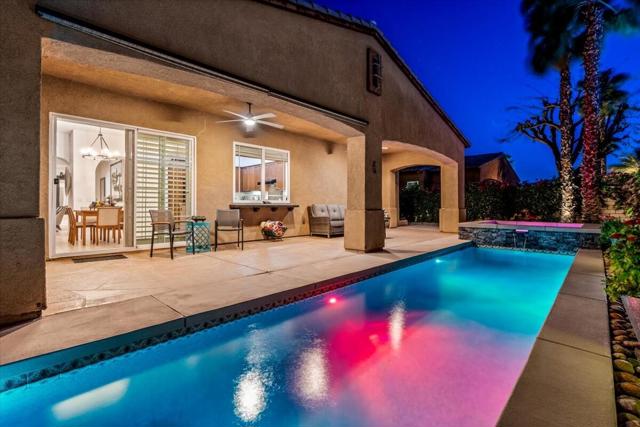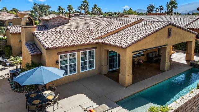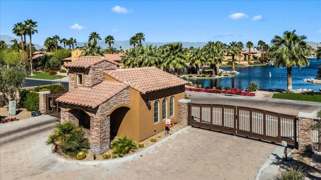 Tranquil Oasis in the exclusive gated enclave of Santo Tomas in Rancho Mirage built around a central 9-acre private lake offering the ultimate in Desert Luxury Living. This contemporary desert retreat is light, bright, and beautifully designed. Perfect for entertaining or just taking in the expansive mountain views. The primary suite is a serene escape featuring a generous walk-in closet, spa-like walk-in shower, and dual vanities designed for comfort and convenience. The 3rd bedroom can be used as a casita. Every space in the home is thoughtfully positioned to maximize natural light and seamless indoor-outdoor living. Step outside to your private backyard oasis where unobstructed mountain views provide a breathtaking backdrop. Enjoy the beautifully finished pool and spa, gather around the firepit under the desert sky, and relax to the soothing sounds of the water feature. The low-maintenance desert landscaping enhances the home's clean contemporary aesthetic. 27 fully owned and paid for Solar Panels w/10.8KWH. Residents enjoy mountain views with full lake rights, along with Social & Sports Membership at the adjacent Mission Hills Country Club offering tennis, croquet courts, pickleball, dining, and an active social lifestyle. Also, add-on an additionally paid Golf Membership offering world-class golf. Highly desirable and ideally located, this home captures the essence of a true retreat and refined desert living. Fee land (you own the land).