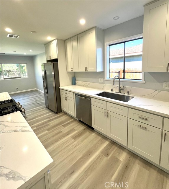 Completely remodeled house! Welcome to this tastefully remodeled house featuring 3Br 2Br a new kitchen with stainless steel appliances, new bathrooms, new flooring throughout, recess lighting, New washer and dryer. Enclosed, cozy back yard with plenty of space for outdoor dinning or leisure activities. Located in a nice residential street bordering Granada Hills. Close to transportation, schools, restaurants, shopping and easy freeway access.