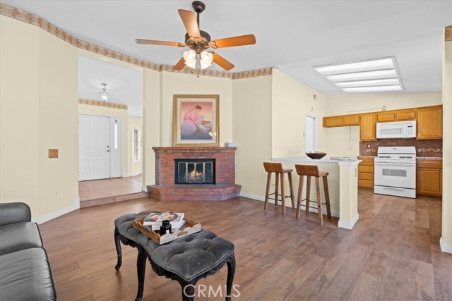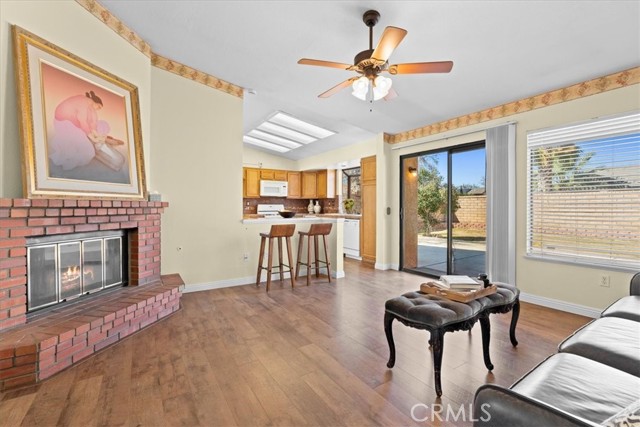 Welcome to this charming single-story home located in the heart of West Palmdale! This 3-bedroom home offers a spacious and open layout featuring vaulted ceilings, abundant natural light, and a cozy brick fireplace that anchors the living area. The bright kitchen features ample cabinetry, skylights, a breakfast bar, and a dining area that flows seamlessly into the main living space—perfect for everyday living and entertaining. The spacious primary suite includes a large bedroom retreat area with its own fireplace, mirrored closet doors, and sliding glass door access to the backyard. Additional highlights include laminate flooring throughout the main living areas, ceiling fans, an indoor laundry room, and a three-car attached garage. Situated on a corner lot, the backyard offers patio and plenty of space to create your own outdoor oasis. Located near shopping, dining, schools, and commuter routes, this home combines comfort, convenience, and great potential in a desirable neighborhood.