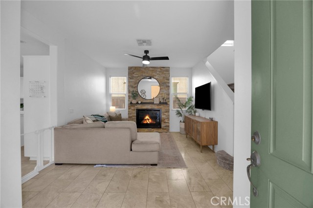 Tucked within one of Orange’s most desirable communities, this detached 3-bedroom, 2.5-bath condo offers the privacy and feel of a single-family home. Highlighted by one of the largest backyards in the neighborhood, nearly twice the size of most others. The outdoor space is a true differentiator: beautifully designed with palm trees, hardscape, and low-maintenance artificial turf, it creates an ideal setting for entertaining, relaxing, or letting kids and pets play freely. Homes in this tract rarely offer this level of yard space. Inside, the home has been thoughtfully refreshed with fresh interior paint, newer carpet, updated bathroom fixtures, new ceiling fans, and new exterior lighting. The downstairs half bath has been upgraded with a new vanity and fixtures, and a new water heater adds additional peace of mind. All three bedrooms are located upstairs, along with the convenience of upstairs laundry and additional linen storage, a practical and functional layout for everyday living. The attached 2-car garage includes an EV charger, and the home is equipped with solar (lease to be assumed; approx. $117/month) helping offset energy costs, especially with EV charging and A/C use. The HOA is just $182/month and includes internet and security patrol, along with access to community amenities including a pool and tennis courts. The home is ideally positioned near Steve Ambriz Memorial Park, the nearby riverbed walking trail, and the popular The Outlets at Orange for dining, shopping, and entertainment. With its fresh interior updates, functional floorplan, attached 2-car garage and an oversized entertainer’s backyard, this home is completely turnkey and ready for its next owner. If you’ve been searching for a property that offers space, comfort, convenience, and low-maintenance living all in one, 271 Sparkleberry Ave delivers everything you’ve been looking for and more.