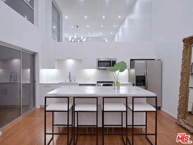 Brand New Loft in the heart of Hollywood featuring dramatic 18-foot ceilings and a spacious open floor plan. This stylish two-bedroom, two-bath residence offers modern finishes, marble bathrooms, and a bright living area designed for both comfort and entertaining. The thoughtfully designed layout provides generous living space with high ceilings that enhance the sense of volume and natural light. Additional highlights include in-unit laundry, central air and heat, fireplace, and two assigned parking spaces. Located in a boutique building with a rooftop deck offering stunning city and Hollywood Sign views. Ideally situated near Runyon Canyon, Sunset Boulevard, dining, shopping, and entertainment.