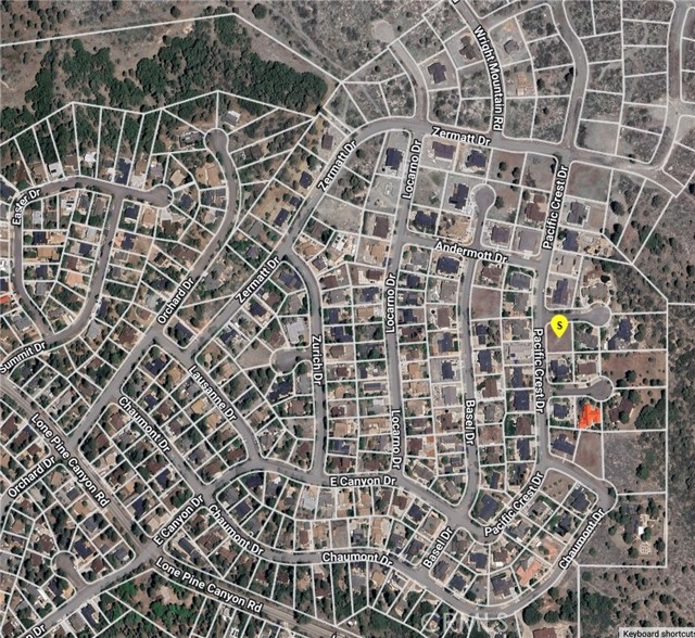 At 5419 Pacific Crest Drive in Wrightwood, discover an opportunity to build your mountain retreat. This 11,300 sq ft / .26 Acre corner lot vacant homesite is one of the last vacant lots in the Pacific Crest neighborhood and places you minutes from Wrightwood Village, Mountain High Resort, and trails in the Angeles National Forest. The setting offers fresh alpine air, tall pines, and four-season recreation—from skiing and snow play to hiking, biking, and stargazing. Enjoy the charm of a close-knit community with dining, coffee shops, and weekend markets nearby. A rare chance to secure land in a beloved destination, ideal for a full-time residence, second home, or investment. Buyer to verify all plans if any, setbacks, utilities, and permitting with local authorities. Water, Sewer, Electricity, Telephone, Natural Gas in the street (buyer to verify).
