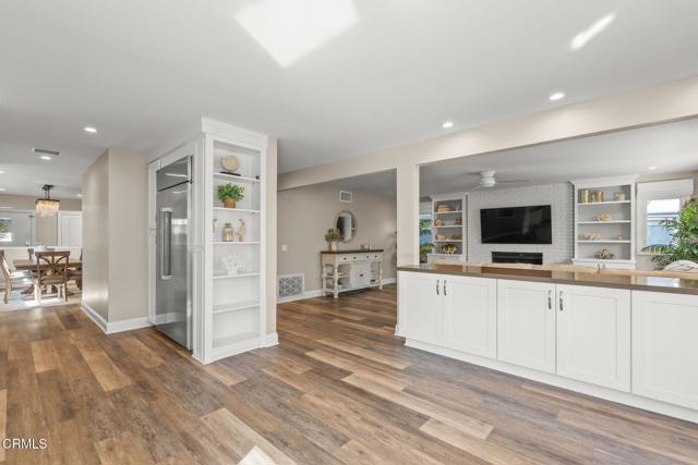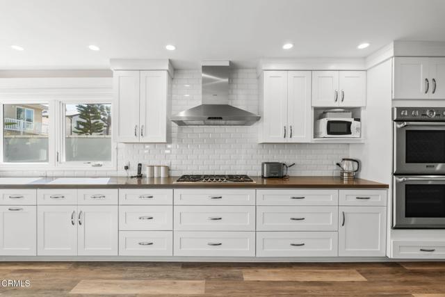 This exceptional Oxnard Shores residence is just steps from the sand at Mandalay Beach. Ideally located west of Mandalay Beach Road, this beautifully remodeled home sits only two homes from direct beach access in one of the most coveted enclaves along the Oxnard shoreline.Over 3,300 square feet, the home offers 4 spacious bedrooms and 4 en suite bathrooms plus a 1/2 bathroom. 5142 Marlin Way has undergone extensive high-quality renovations, including updated plumbing, electrical, heating systems, kitchen, bathrooms, roof, decking, and more. Blending timeless craftsmanship with modern comfort. The heart of the home is a gourmet kitchen featuring Sub-Zero and Thermador appliances, custom cabinetry, and seamless flow into the inviting family room.The property's private outdoor living spaces include a beautifully designed patio and outdoor dining area, outdoor shower, fully fenced and gated for privacy, creating a serene retreat just moments from the ocean. A rooftop deck with ocean and mountain views offer the perfect setting to enjoy sunsets and coastal breezes.Additional premium features include, Casement windows, Wood flooring throughout, Solid interior doors, Custom built-in cabinetry, Built-ins in every closet, Three fireplaces, Custom window coverings, Central air conditioning, Electric vehicle charging station, Built-in garage cabinetry, Tiled roof, Outdoor shower for post-beach living, Built-in BBQ for effortless entertaining, Fresh exterior paint.