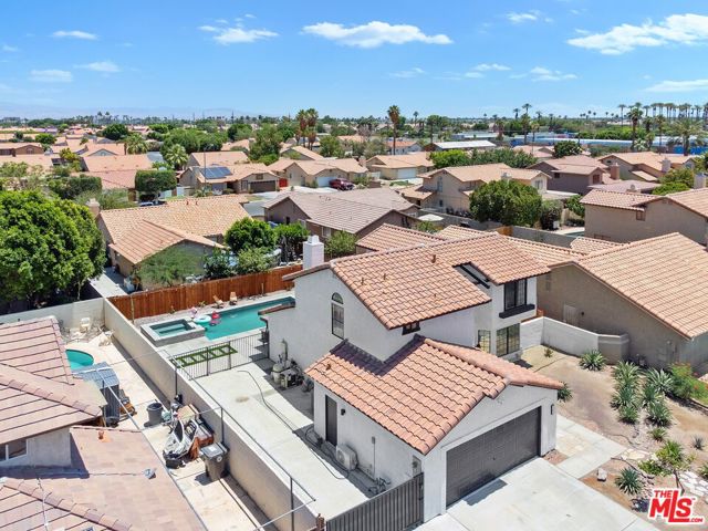 Welcome to 45808 Sutter Creek, a spacious desert retreat ideally positioned in the heart of Indio available starting May 15th for a 1 year+ lease. This two-story residence features 4 bedrooms and 3 bathrooms across approximately 1,787 square feet, with a thoughtfully designed layout that balances everyday living with relaxed entertaining. Natural light fills the main living areas, where a welcoming fireplace creates a warm focal point. The open flow between the living, dining, and kitchen spaces makes gatherings easy and comfortable. A desirable downstairs bedroom and full bath provide flexibility for guests, a home office, or multigenerational living. Upstairs, the primary suite offers a peaceful retreat, while additional bedrooms capture beautiful desert light and distant mountain views. The private backyard features a covered patio, sparkling pool and spa, perfect for morning coffee, evening dinners, or enjoying the desert air. Conveniently located near schools, parks, shopping, dining, and just minutes from the festival grounds, this home offers both lifestyle and location in the heart of the Coachella Valley.