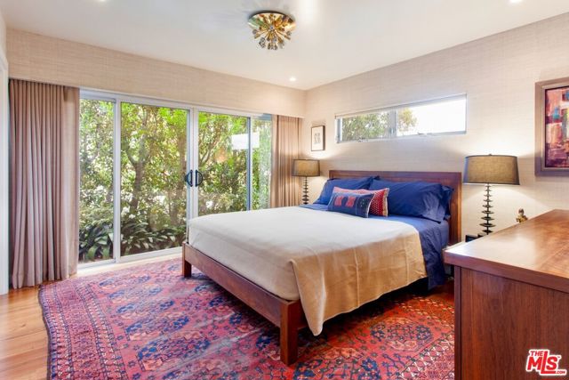 This fully furnished, sun drenched mid-century architectural home in Laurel Canyon is available for a seasonal lease beginning June 1. Originally designed by Kenneth Lind AIA, the house takes advantage of natural light and stunning views of the Hollywood sign and the San Gabriel Mountains beyond. A generous great room for relaxing and dining is adjacent to the cook's kitchen, featuring a breakfast island, high end appliances, and access to outdoor space. The den is furnished with seating for TV watching, a piano and a custom desk. The en-suite primary bedroom includes a California king bed, walk-in closet and laundry, while the 2nd bedroom is currently used as an office with a queen size sofa bed and second bathroom across the hall. A spacious terrace and deck area are ideal for al-fresco dining, lounging, and enjoying the sunshine. Use of the garage is not included, but street parking is available in front of the house. The property is located on a cul-de-sac street 15 minutes from the Sunset Strip, and offers easy access to West Hollywood, Beverly Hills and the San Fernando Valley.