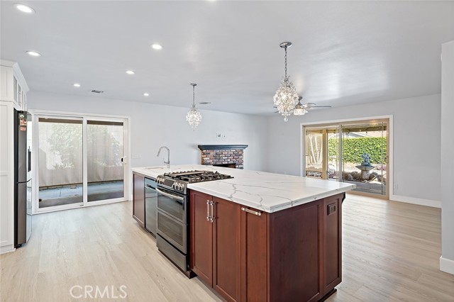 Fully remodeled and move-in ready, this beautifully upgraded 4-bedroom, 2-bath home offers 1,441 sq ft (per appraisal) of comfortable living space in a desirable Rancho Cucamonga neighborhood with stunning panoramic mountain views. Conveniently located near the 210 Freeway, Victoria Gardens, shopping, dining, parks, and local schools, this home combines convenience, comfort, and thoughtful upgrades. The home features a remodeled chef’s kitchen with a custom bar-style layout and a dedicated coffee bar, creating a great space for both everyday living and entertaining. Appliances included with the home are the refrigerator, washer, dryer, dishwasher, and stove. The bathrooms have been tastefully updated with finishes that blend style and functionality. The fourth bedroom is currently configured as a spacious office/storage area and can easily be converted back into a bedroom if desired. Recent improvements include a new electrical system with updated electrical junctions, upgraded plumbing piping, upgraded ductwork, added insulation including the garage and attic space, complete roof replacement, upgraded flooring, upgraded windows with shutters and blinds, and upgraded interior and exterior paint. The garage also features custom cabinets providing additional storage. Additional highlights include RV parking, privacy glass windows, a Ring Alarm security system, and a Tesla charger that will remain with the property. The backyard is designed for relaxation and entertaining, featuring two patio areas, a covered wrap-around patio, landscaped yard with a drip irrigation system, and a pre-installed slab ready for a future sauna or jacuzzi. Ideally located within walking distance to elementary, middle, and high schools, and just minutes from Chaffey College, Victoria Gardens, shopping, dining, and scenic parks. This is a wonderful opportunity to own a thoughtfully upgraded home in one of Rancho Cucamonga’s most sought-after communities.
