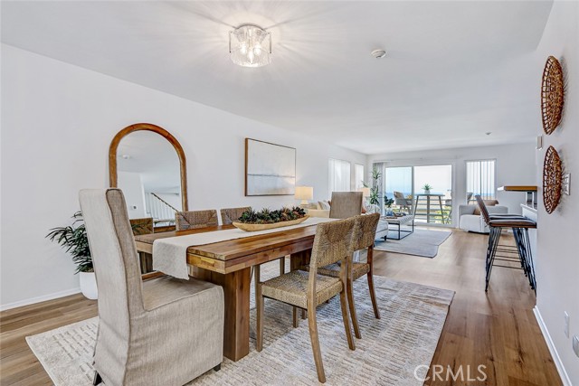 Experience coastal living at its finest in this stunning 3-bedroom, 3.5-bath townhome in the heart of Hermosa Beach, offering breathtaking panoramic ocean views. Tucked away on a private cul-de-sac with only four side-by-side residences, this home feels like a single-family retreat. Sunlight pours through expansive floor-to-ceiling windows, filling the home with natural light and highlighting the beautiful ocean vistas. The main living level features an open-concept living room with a large ocean view deck perfect for entertaining. This living area opens to the dining area and a remodeled kitchen with high end stainless steel appliance and picture windows overlooking the spacious grassy backyard—an uncommon and highly desirable feature for beach living. The generous family room opens directly to the backyard, creating the perfect indoor-outdoor flow for relaxing or entertaining. Upstairs, three large bedrooms each offer their own en-suite bathrooms, providing comfort and privacy for family and guests. The impressive primary suite features a private ocean-view deck and a beautifully upgraded bathroom with dual sinks, a soaking tub, and a large walk-in shower. Additional upgrades include newer luxury vinyl flooring throughout, fresh paint, and stylish new light fixtures. With two ocean-view decks, a large backyard, and a prime location just a short distance to the beach, pier, shops, and restaurants, this home offers the very best of Hermosa Beach living at an exceptional value.