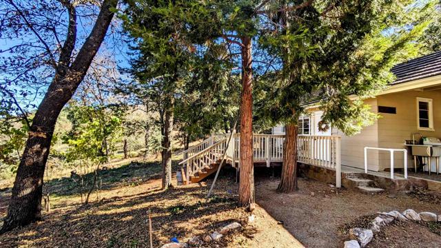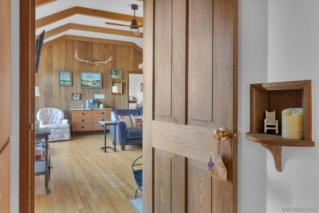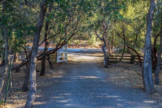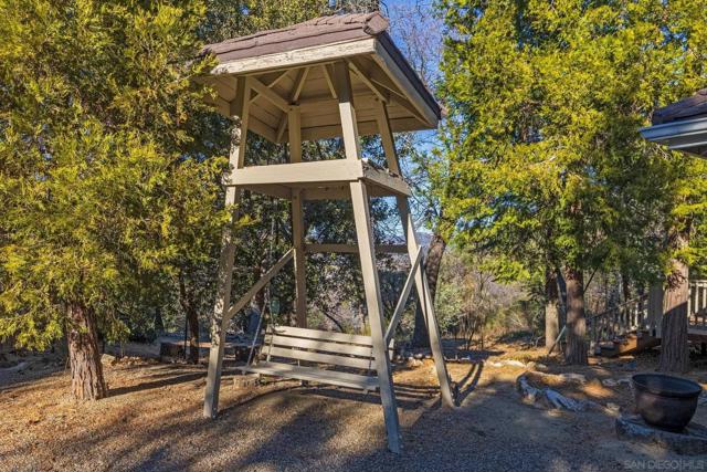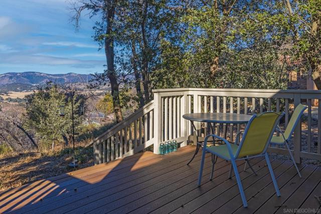 AMAZING VIEWS! Nestled at the top of a scenic hill in Julian's highly sought-after Pine Hills neighborhood, this captivating 1949 home exudes timeless mountain charm and privacy. With only three part-time owners, this remarkable property offers 1.16 acres of serene natural beauty, with old oaks, towering pines, and manzanita. A highlight of the property is the detached guest studio with a deck, and the flagstone courtyard, with its natural stone-lined pathways, providing a tranquil escape for relaxation and outdoor enjoyment. The panoramic views of the Volcan Mountain range will take your breath away. This is an ideal setting for birdwatching and observing the local wildlife, including herds of deer, turkeys, and the occasional fox. The home is in charming original condition, reflecting the thoughtful design of its first owner—an engineer and designer. The classic vintage tile, fixtures, fireplace, and wood floors create a nostalgic allure. The exterior is crafted with hard old-grove redwood siding, known for durability and beauty. The home features zoned area heating and air conditioning mini-splits for efficient performance, two water heaters (including one for the separate studio), and a large Elvira wood-burning insert for cozy warmth on cooler days. This home blends comfort with character. The property includes an attached and detached garage, a carport, and ample parking for guests. The land is cleared and meticulously maintained, ensuring easy access and usability. With a metal-tiled roof and pest-resistant old grove redwood siding.Move in ready!