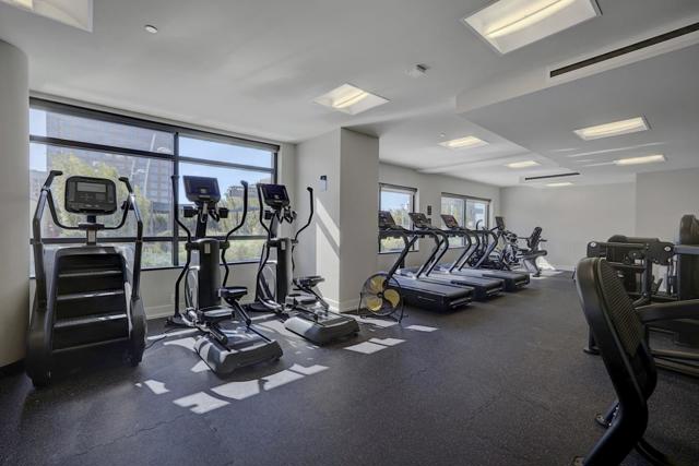 Experience elevated city living in this stunning south-facing condominium, where expansive picture windows frame sweeping views of the San Jose skyline and the mountains beyond. This move-in-ready home features fresh interior paint and brand-new bedroom carpeting. The open-concept heart of the home shines with Brazilian cherrywood flooring, granite slab countertops, and premium stainless steel appliances. Retreat to a primary suite designed for comfort, boasting picturesque views, dual spacious closets, and a refreshed ensuite with dual vanities. The unit also features an in unit laundry and gated parking. Enjoy 24/7 concierge security and world-class amenities, including a heated saltwater lap pool, a newly updated fitness center, and a rooftop deck perfect for 4th of July fireworks. HOA also includes Water & Garbage. Host guests in the clubhouse kitchen or the outdoor BBQ lounge. Steps from San Pedro Square, SJSU, Christmas in the Park, SJ Convention Ctr & SJ Museum of Art. With Adobe, Zoom, & PayPal nearby, & effortless access to VTA, Caltrain, freeways (280/87/101), SAP Ctr & Airport. Near Whole Foods, Original Joes, Il Fornaio, La Victoria Taqueria. Open House Saturday 03/14 & Sunday 03/15 from 1-4 PM.