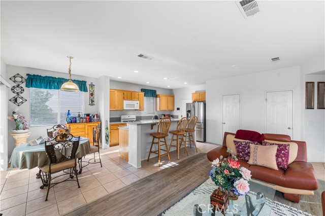 * Seller is offering a $10,000 CREDIT toward buyer's closing costs * TRUE PRIDE OF OWNERSHIP! This beautiful 2 story home is located in a quiet neighborhood in West Lancaster. The functional floor plan offers 5 bedrooms, 3 full baths and 2,860 square feet of living space! Family room with a rock fireplace, upgraded laminate flooring, entertainment nook and a mounted 55'' TV with soundbar (included in the sale). The kitchen has gorgeous Corian countertops, a large breakfast bar, 2 storage pantries and a dining area. BONUS ROOM currently being used as a formal dining room with fine finishes including a stunning chandelier, crown molding and chair rails. The HUGE primary retreat offers a private en suite bath with 2 walk-in closets, dual vanity sinks and a separate shower & tub. Upstairs LOFT provides a cozy living space and desk area! Other features include a DOWNSTAIRS BEDROOM and full bath, a formal living room, upstairs laundry room (washer & dryer included), upgraded ceiling fans throughout, 2 car attached garage and possible RV access. The spacious backyard has a covered patio, large grass area, block wall fencing and mature landscaping providing shade and privacy. Speaking of privacy... NO rear neighbors EVER!