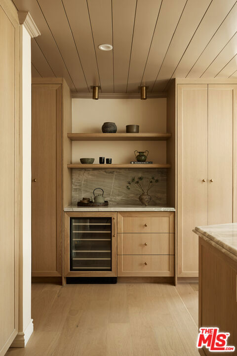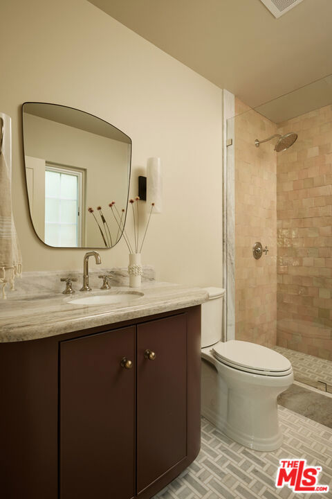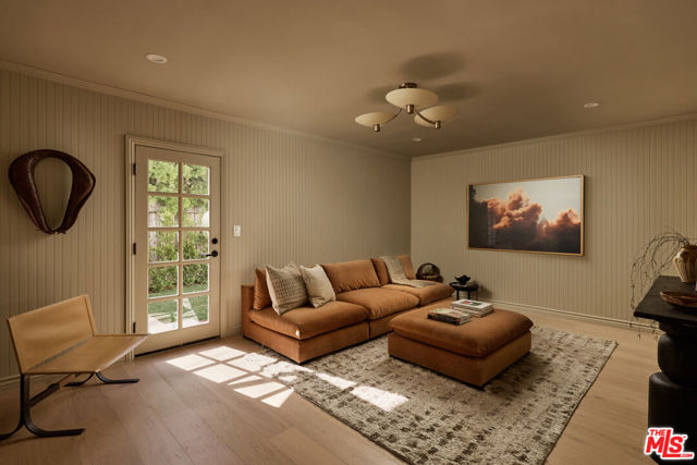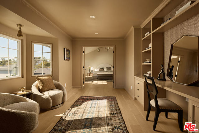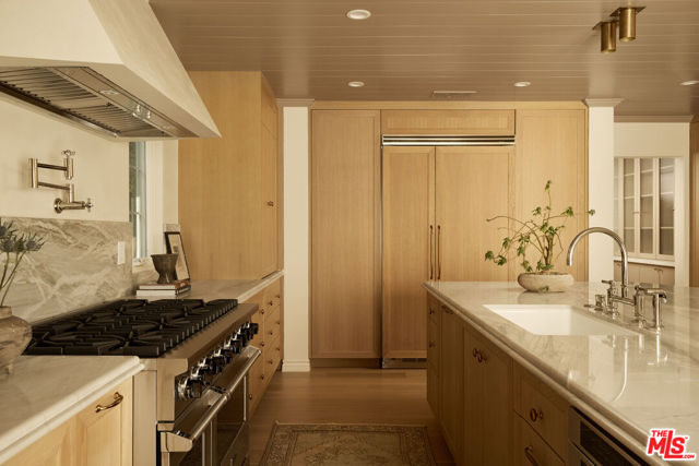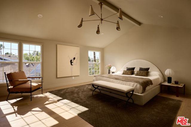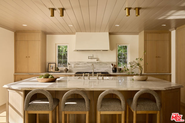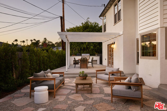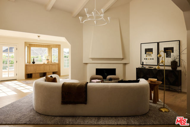 This beautifully reimagined residence in the heart of highly sought-after Cheviot Hills blends timeless architectural character with refined contemporary design. Set on a picturesque tree-lined street within the coveted California Country Club Estates, the six-bedroom, six-bath home showcases elevated materials, thoughtful craftsmanship, designer lighting, and a warm, sophisticated palette throughout. A welcoming entry introduces the home's light-filled interiors, where soaring vaulted ceilings, exposed beams, and expansive windows create an airy sense of scale. The elegant living room is anchored by a sculptural fireplace hand-finished in Roman Clay, creating a striking focal point that balances warmth and architectural character. At the center of the home, the chef's kitchen serves as both a showpiece and gathering space, featuring bespoke white oak cabinetry, quartzite countertops with a double bullnose edge, and an expansive island designed for entertaining. A suite of panel-ready premium appliances is complemented by a dedicated beverage station and beautifully crafted china cabinetry just off the kitchen. Double French doors extend the living spaces outdoors to a romantic pergola-covered patio with a built-in barbecue, perfect for alfresco dining and entertaining year-round. The main level also includes two spacious en-suite guest bedrooms, an additional bedroom ideal for a home office, a stunning powder room finished with handcrafted Zellige tile, and a generous laundry room. Upstairs, a color-drenched sitting area with custom built-in cabinetry welcomes you to the serene primary suite, where vaulted ceilings and a double-door entry create a peaceful retreat. The spa-inspired primary bath, with hand-finished Roman Clay walls features a custom white oak dual vanity, an oversized shower finished in handcrafted terracotta tile, a freestanding soaking tub, unlacquered brass plumbing fixtures, and a spacious walk-in closet. Two additional guest bedrooms, a beautifully designed shared bath finished in Rosso Levanto marble tile, and a secondary laundry area complete the upper level. Outside, the expansive approximately 9,763-square-foot flat lot offers beautifully landscaped, park-like grounds. A generous grassy lawn and mature hedging provide privacy while creating an ideal setting for outdoor living and entertaining. Ideally located near Fox Studios, the Griffin Club, Rancho Park Golf Course, and the renowned shopping and dining of Westfield Century City, this exceptional home offers a rare opportunity to experience a fully reimagined residence that seamlessly blends timeless design with modern living in one of Los Angeles' most desirable neighborhoods.