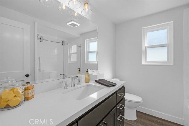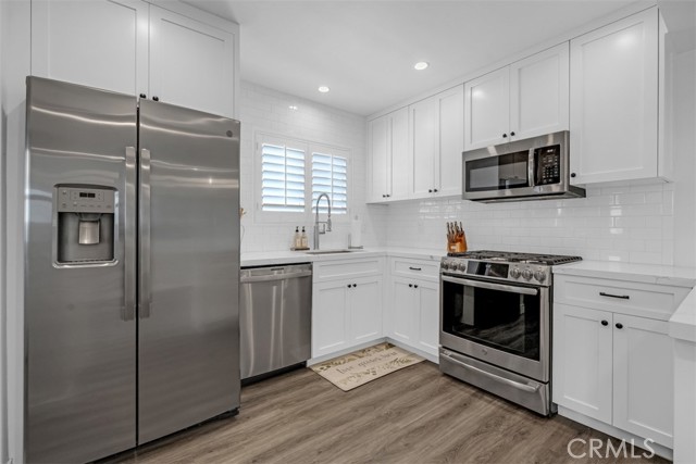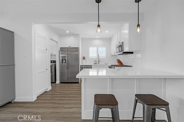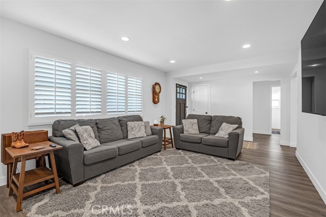A well-maintained and tastefully updated home where major improvements have already been completed. This beautifully updated residence offers extensive system improvements, including a 5-year-old roof, a fully re-piped home with AquaPEX tubing, copper main water line, upgraded 200-amp electrical panel, and a newer HVAC system with updated ductwork. LED recessed lighting with dimmers enhances the bright, modern interior, while Milgard windows and sliding doors add both style and energy efficiency. Plantation shutters throughout the home add a timeless, upscale touch. Inside, the home features luxury vinyl plank flooring, newer carpet, updated baseboards, interior doors, and designer hardware throughout. The remodeled kitchen is the heart of the home, showcasing soft-close cabinetry, a pantry with pull-out drawers, and quality GE appliances. A Whirlpool washer and dryer are also included. Additional highlights include a cozy gas fireplace, mirrored closet doors in the bedrooms, and a retractable ceiling-mounted folding staircase providing easy attic access. The garage is fully drywalled and insulated. Exterior improvements include re-insulated walls, updated electrical wiring throughout the home and garage, newer shutters, newer stucco, and convenient RV parking—perfect for all your toys.