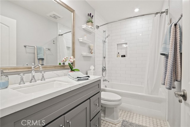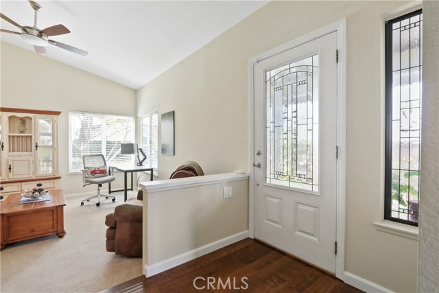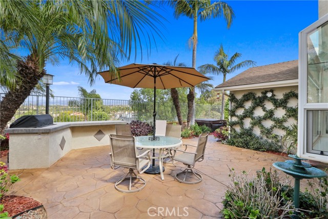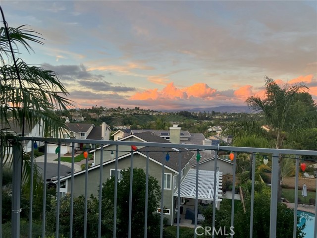 Welcome home! This lovingly maintained 3 bedroom, 2 bath single story home has a spectacular panoramic view of Saddleback Mountain, Valley and city lights. The leaded glass paned front door leads into the light & bright foyer flanked by a living room with vaulted ceiling and fan. The well appointed dining room and kitchen opens to the family room complete with a gas fireplace that provides both warmth and ambience. The clean and efficient kitchen features granite counters, beveled white subway tile backsplash, newer appliances and garden window over the sink affording access to the expansive view. Sliding glass doors give entry to the backyard from both the family room and master bedroom. The master bedroom has a vaulted ceiling and a large walk-in closet. Both bathrooms are tastefully upgraded with quartz counters and tiled bath and showers. Other amenities of this inviting home include engineered hardwood floors, dual paned windows, solid core interior doors and ceiling fans in all bedrooms, living room and family room. 2 skylights in the hall insure that there are no dark corners in this lovely home. The backyard comes complete with a built-in BBQ and above ground secluded hot tub for relaxing entertainment opportunities to take advantage of the incredible views. The neighborhood is conveniently located in close proximity to shopping and dining and offers membership to Lake Mission Viejo. Hurry!! This one won't last long.