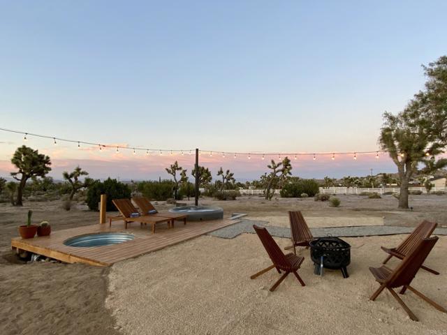 Escape to your own private desert retreat on 2.5 acres of peaceful, usable land with more than 20 mature Joshua trees, creating a truly iconic high desert setting. This beautifully upgraded Yucca Valley cottage has been thoughtfully transformed into a tranquil getaway with modern comfort and privacy in mind. Inside, the home feels bright and inviting with new dual pane vinyl windows and sliding doors, upgraded finishes, and new air conditioning for year round comfort. Recent improvements also include a new 200 amp electrical panel to support modern living. Outside, the entire property is fully fenced, offering privacy and security along with beautiful landscaping, a relaxing outdoor deck, and a hot tub perfect for soaking under the desert stars. With plenty of flat, usable land, there is room to expand, add a pool, guest house, or simply enjoy the wide open space. Located near Pioneertown, Pipes Canyon, hiking trails, and Joshua Tree National Park, this property offers the perfect balance of privacy, recreation, and convenience just minutes from town.
