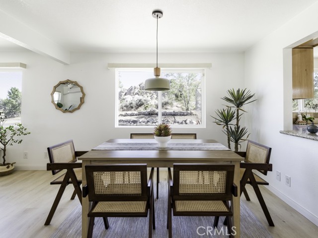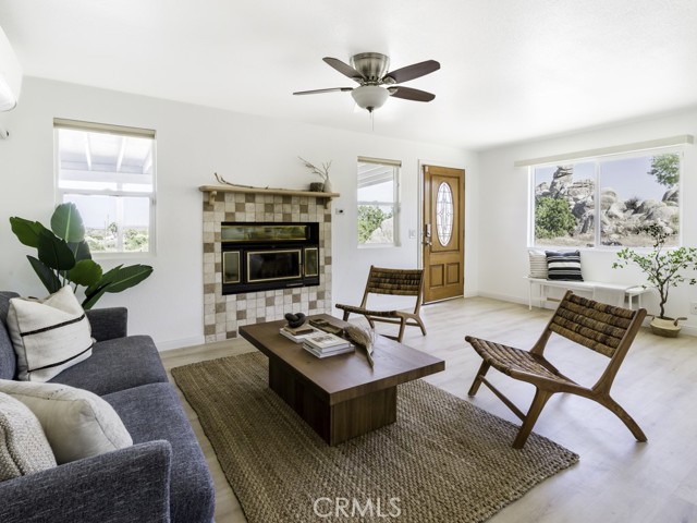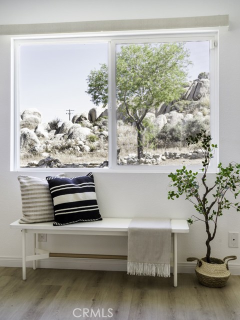 TWO PARCELS! BOULDERS! PRIVACY! Located in the serene town of Yucca Valley, this charming 2-bedroom, 1-bathroom home is a hidden gem on a spacious 1.39 acre lot, offering ample room for both relaxation and entertainment. Set in the breathtaking desert landscape, this property showcases a unique blend of character and tranquility. Built in 1959, this 974-square-foot home exudes a sense of history and warmth, with a two-car garage providing convenient parking options. The home has been upgraded with mini-split systems for heating and cooling along with waterproof laminate flooring. The expansive lot is huge - but there is an opportunity to purchase an additional 1.35-acre parcel, ensuring plenty of space for outdoor activities and future developments. Step outside to discover a meticulously landscaped yard adorned with native desert flora and stunning boulders, creating a harmonious blend of natural beauty and human craftsmanship. This property is not just a house; it's a true sanctuary where you can soak in the peaceful surroundings and embrace the essence of desert living.