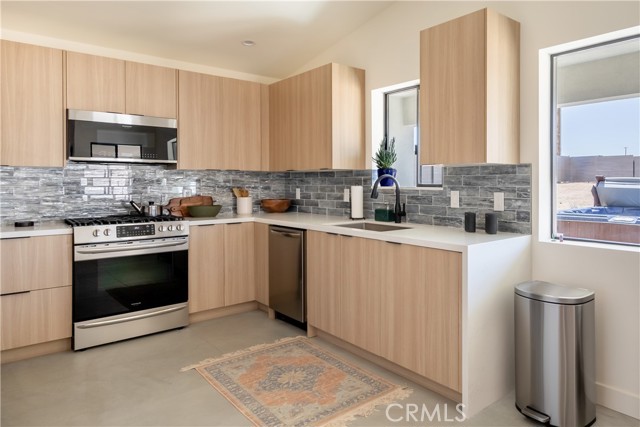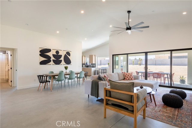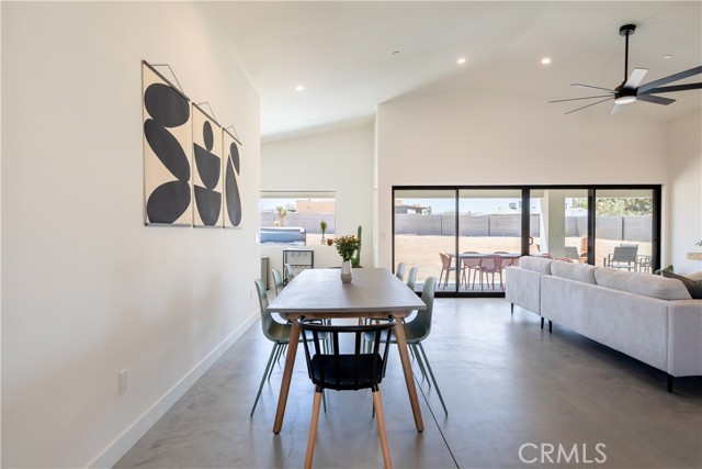 Stunning 4-Bedroom, 2-Bath Home on the Mesa in Yucca Valley! Set on a desirable corner lot with over half an acre of land, this 2022-built home offers the perfect blend of modern comfort and desert charm. Featuring 1,902 sq. ft. of open living space, soaring ceilings, and polished concrete floors throughout, this property is designed with both style and functionality in mind. The heart of the home is the expansive kitchen, complete with quartz countertops, stainless steel appliances, and a generous island that flows seamlessly into the spacious living room—ideal for hosting family and friends. Each of the four bedrooms offers plenty of room to make your own, while the primary suite is a true retreat with high ceilings, double vanity sinks, a huge walk-in closet, and a spa-like bathroom. Additional highlights include central heating and A/C, an indoor laundry room, and a covered back patio—perfect for enjoying peaceful mornings or relaxing evenings under the desert sky. This move-in ready home checks every box. Don’t miss your chance to own a modern desert oasis in beautiful Yucca Valley. Schedule your showing today!